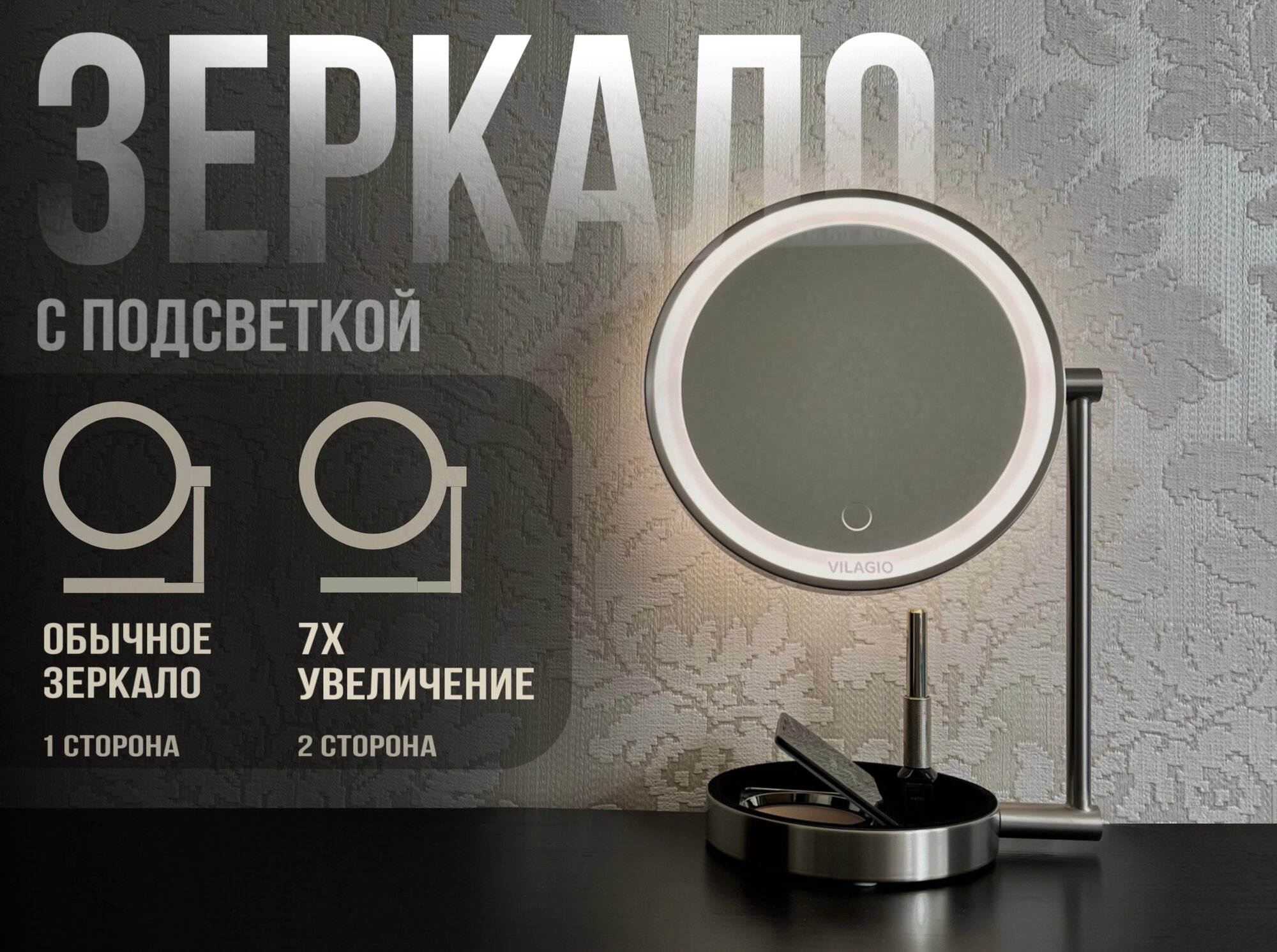 Купить Зеркало Ø20 см., увеличительное х7 с подсветкой, двустороннее / VILAGIO / D826SE-SNP/stol.podst.hrom