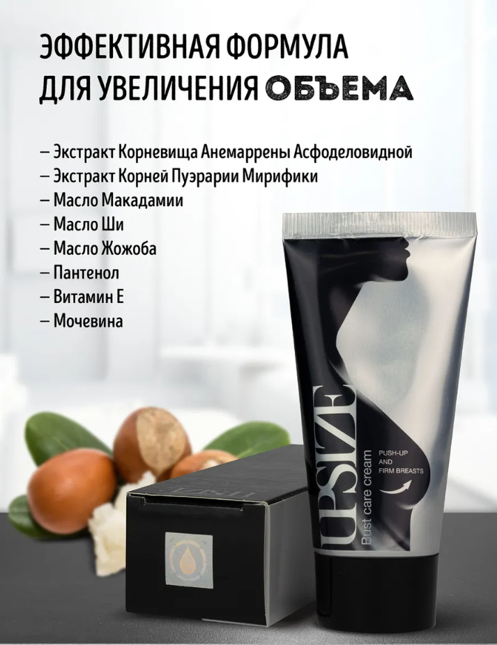 Крем для увеличения груди подтягивающий Upsize (Упсайз), увеличения объёма и подтяжки зоны декольте