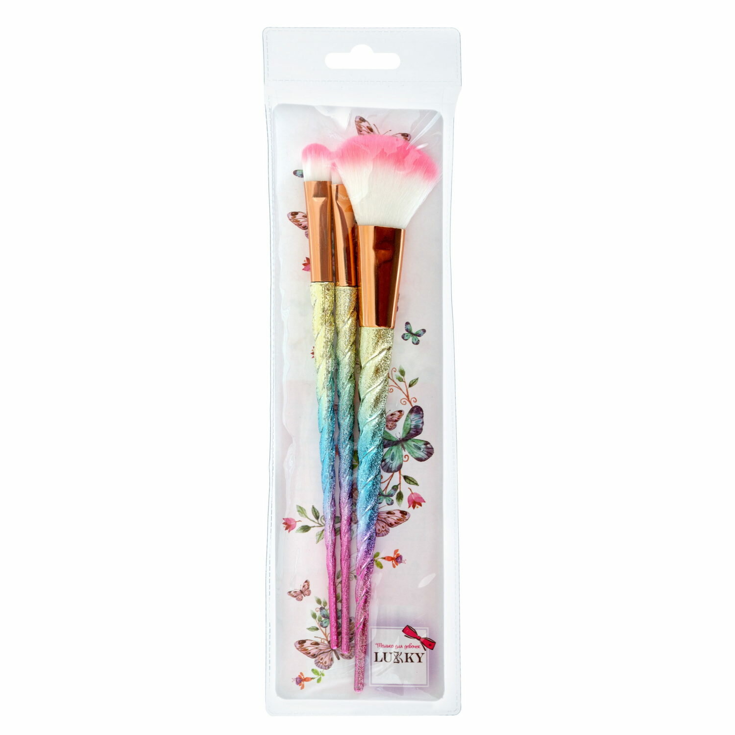 Купить Набор кисточек LUKKY 3 кисти для нанесения макияжа "Единорог"