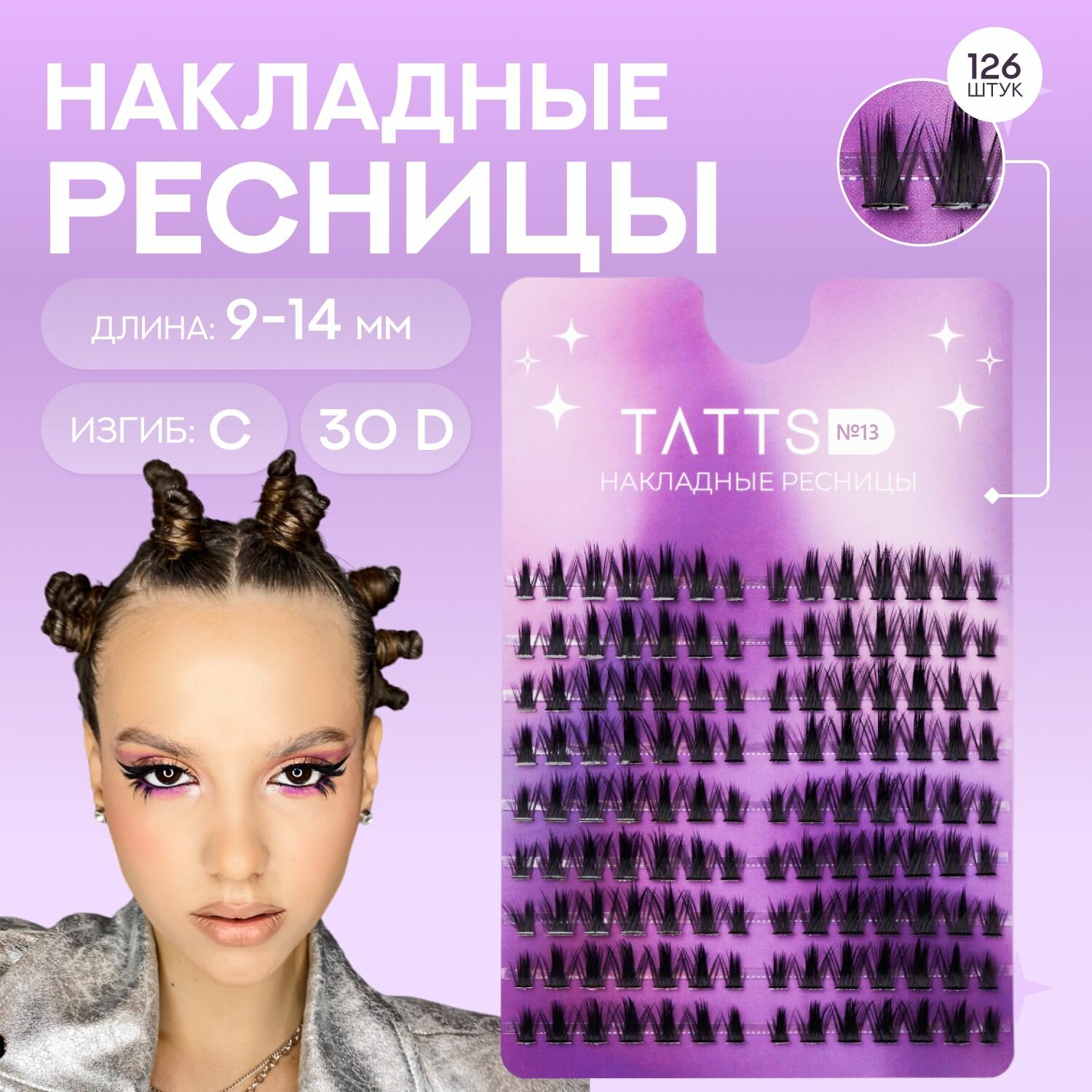 Tatts Накладные пучки ресниц Super star, объем 30D, изгиб C, длина 9-13мм, №13 интересное: