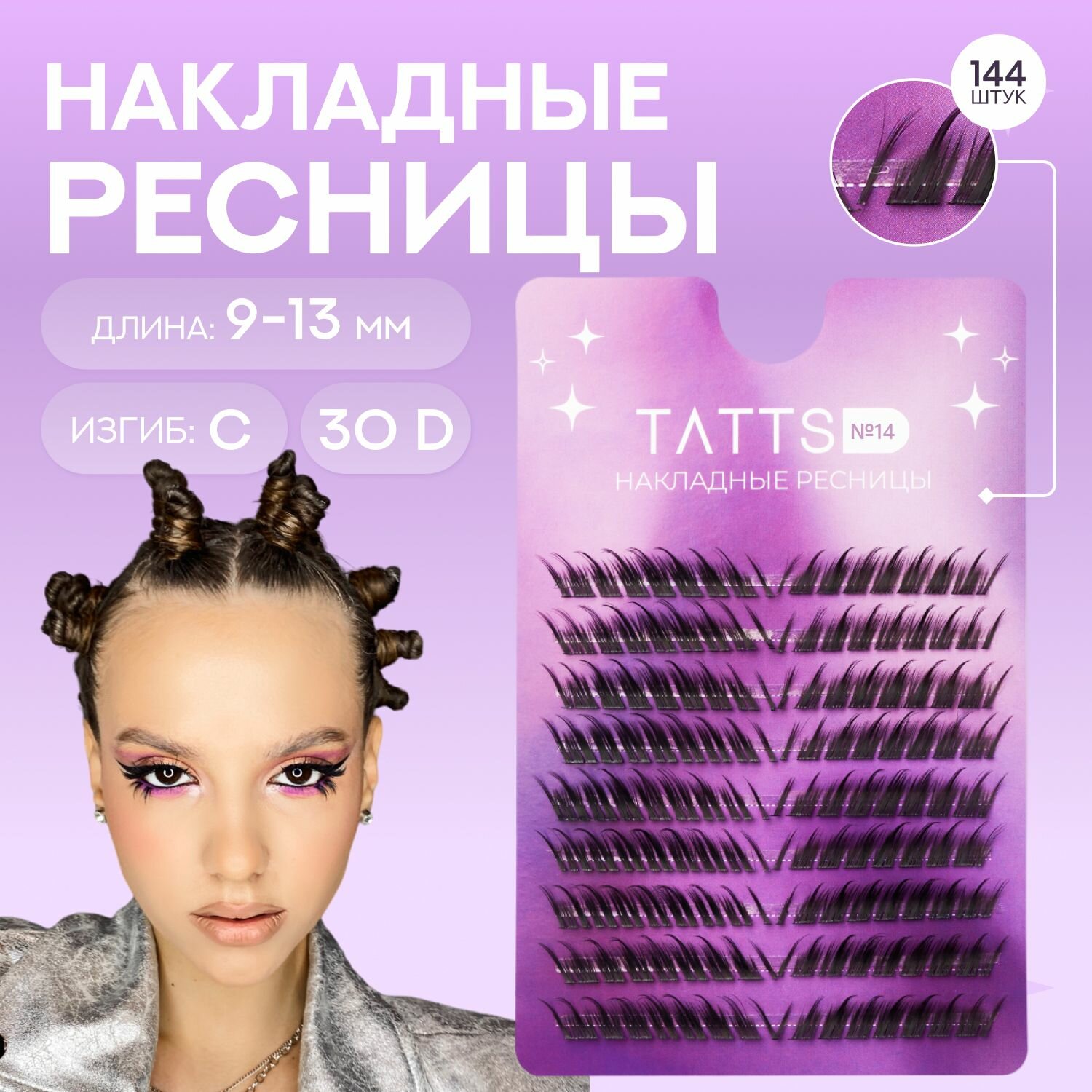 Tatts Накладные пучки ресниц Super star, объем 30D, изгиб C, длина 9-13мм, №13