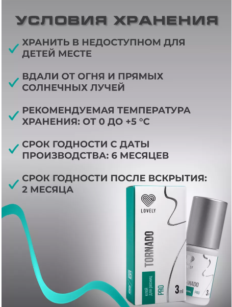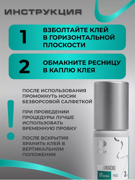 | Дополнительная информация | максимально быстрая скорость сцепки 0,5 секунд, минимум запаха и испарений, высокая эластичность, срок носки ресниц до 8 недель |