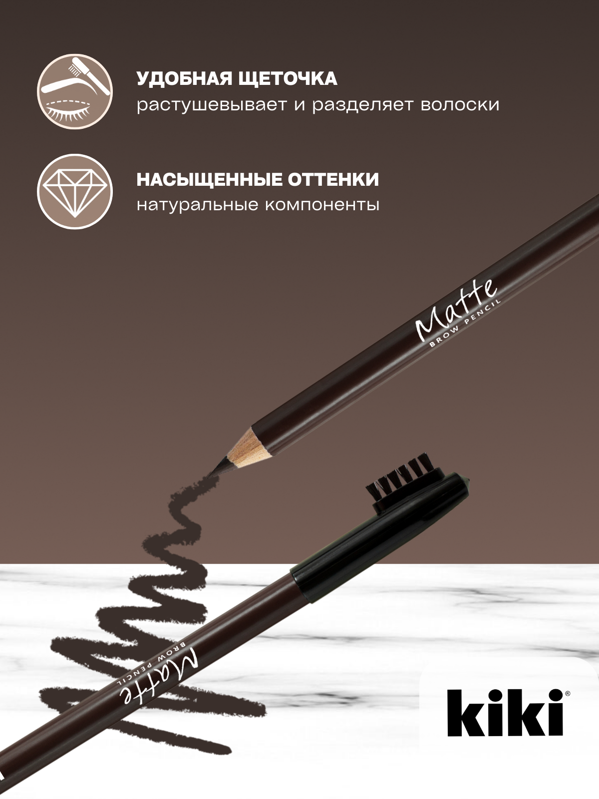 Карандаш для бровей KIKI MATTE с щеточкой для придания формы оттенок 63 коричневый