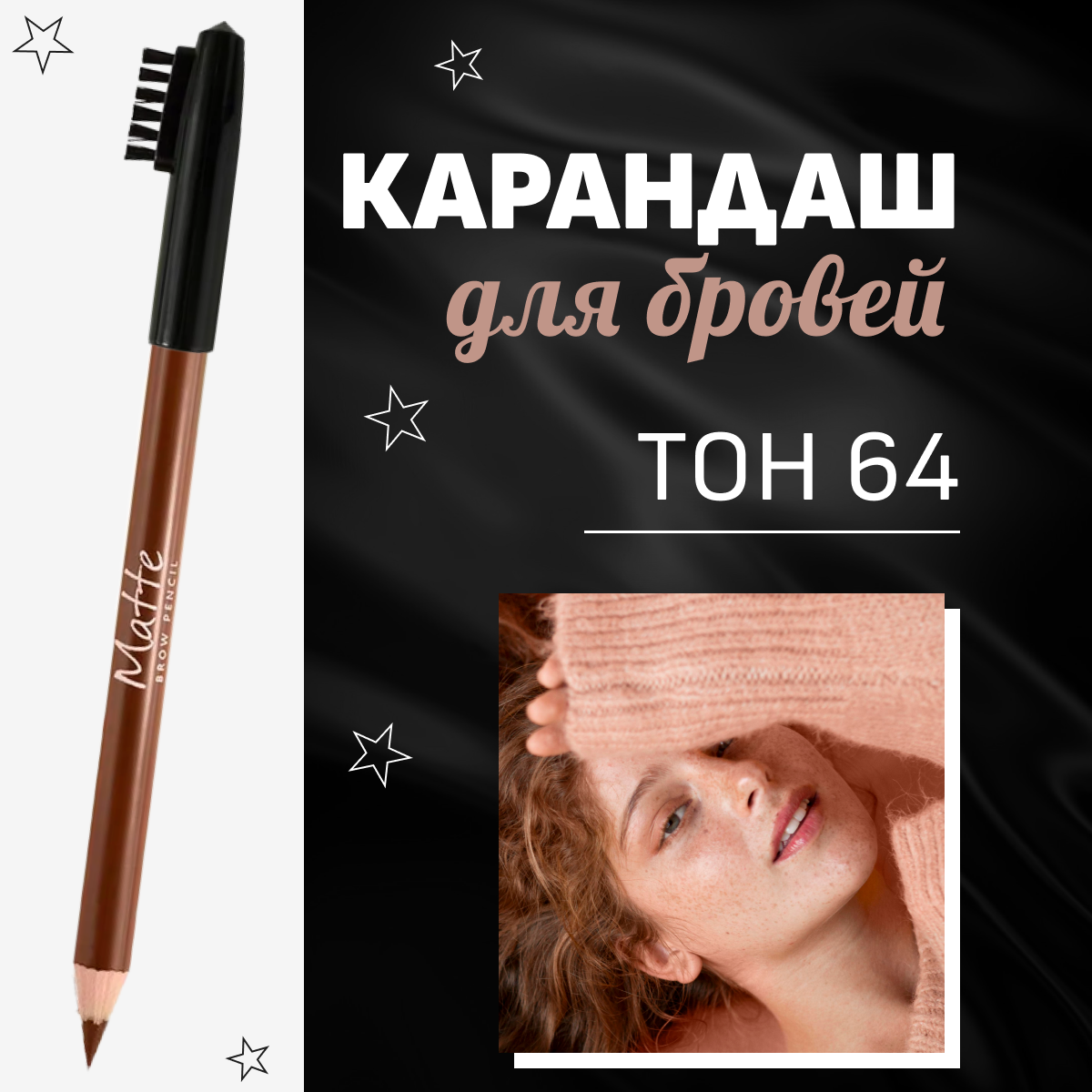 Карандаш для бровей kiki eyebrow matte тон 64 глиняный с щеточкой-расческой для моделирования и прорисовки, стойкий макияж бровей, кики