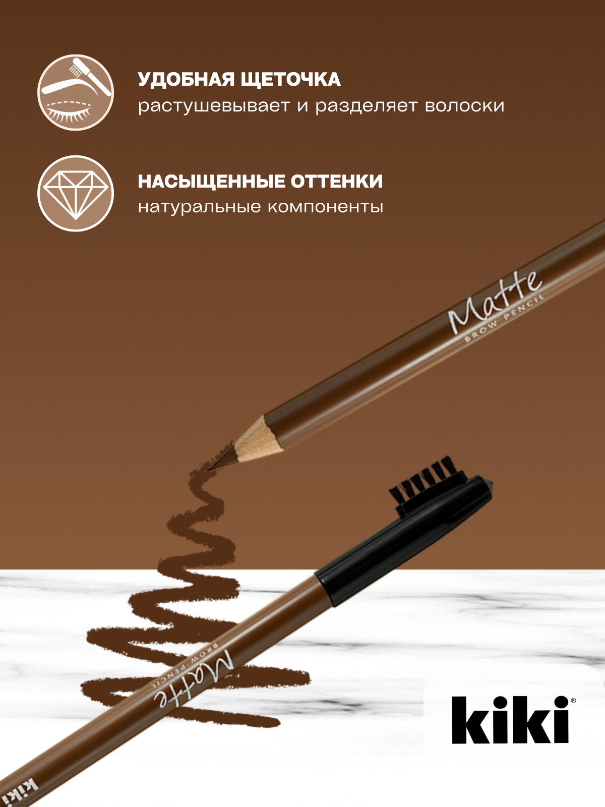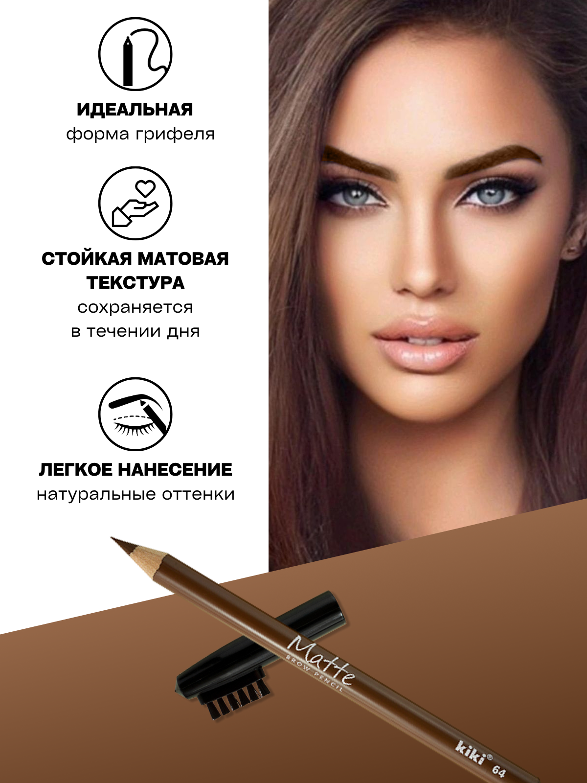 Карандаш для бровей kiki eyebrow matte, тон 63 коричневый, с щеточкой-расческой для моделирования и прорисовки, стойкий макияж бровей