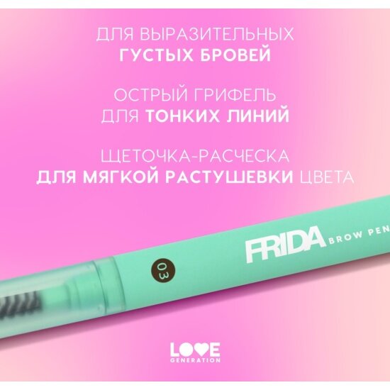 Карандаш для бровей Love Generation Frida автоматический с щеточкой, тонкий острый грифель, тон 03, холодный коричневый, 0,15 г интересное: