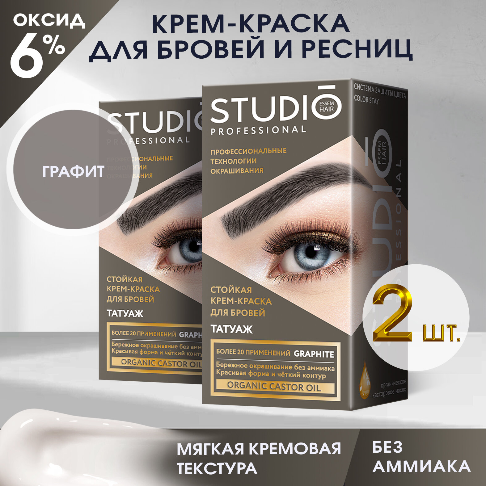 Купить Studio Стойкая краска для бровей с эффектом татуажа Графит, 30/20 мл - 2 штуки