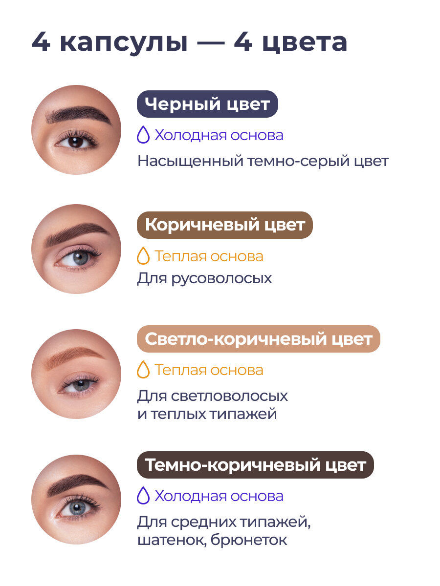 | Дополнительная информация | в наборе: 4 капсулы с хной разных цветов (черный, темно-коричневый, коричневый и светло-коричневый), минеральный раствор для разведения хны (10 мл), мерный стаканчик и 4 микробраша для нанесения |
