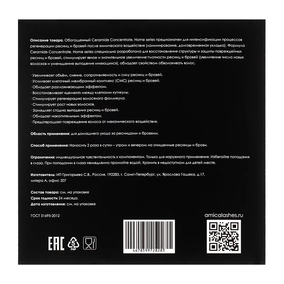 | Подробная комплектация | Amica Lashes Home series Домашний церамид концентрат для бровей и ресниц в Саше 2мл. 1шт., буклет |