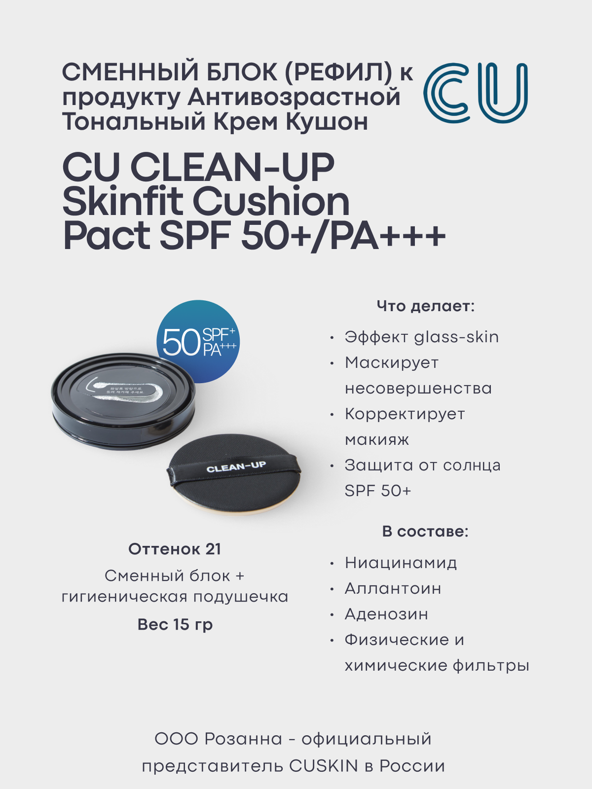 Антивозрастной тональный крем-кушон / рефил №21 Cuskin Clean-up Skinfit с SPF 50+, 15мл интересное: