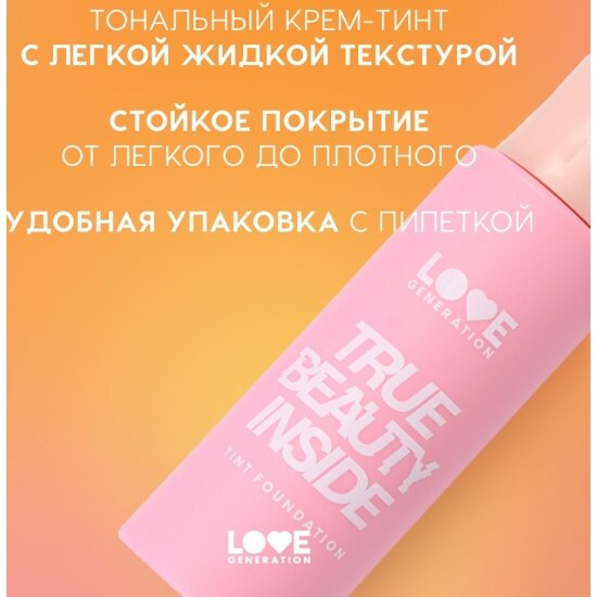 Тональный крем-тинт Love Generation True Beauty inside для лица, стойкий, пудровый финиш, тон 04, бежевый, 27 мл интересное: