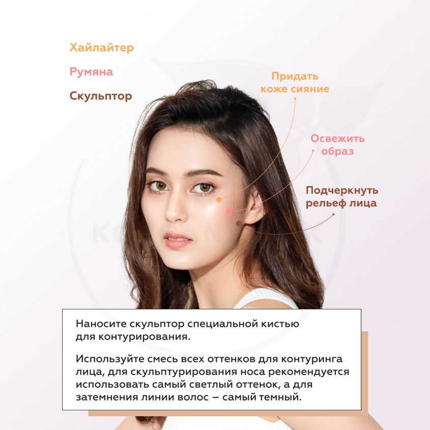 | Способ применения | нанесите небольшое количество скульптора на необходимые участки, растушуйте кистью или спонжем. |