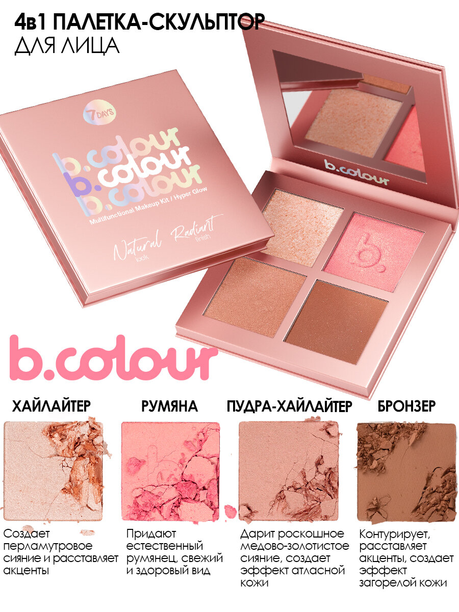 Хайлайтер для лица, румяна, бронзер 7DAYS B.COLOUR HYPER GLOW интересное: