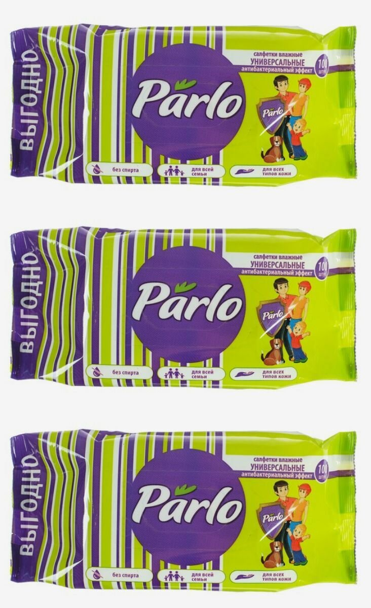 Купить Parlo Влажные салфетки универсальные, Антибактериальные 100 шт/уп, 3 шт