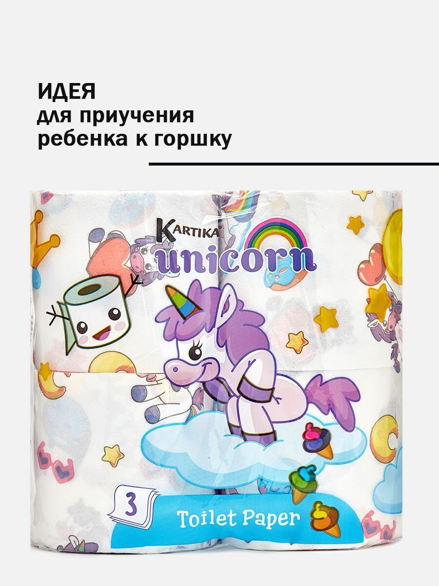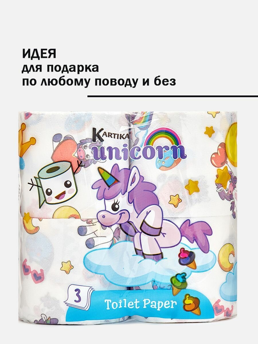 Купить Туалетная бумага с рисунком "Единорог" 3 слоя, 4 рулона по 200 листов, World Cart