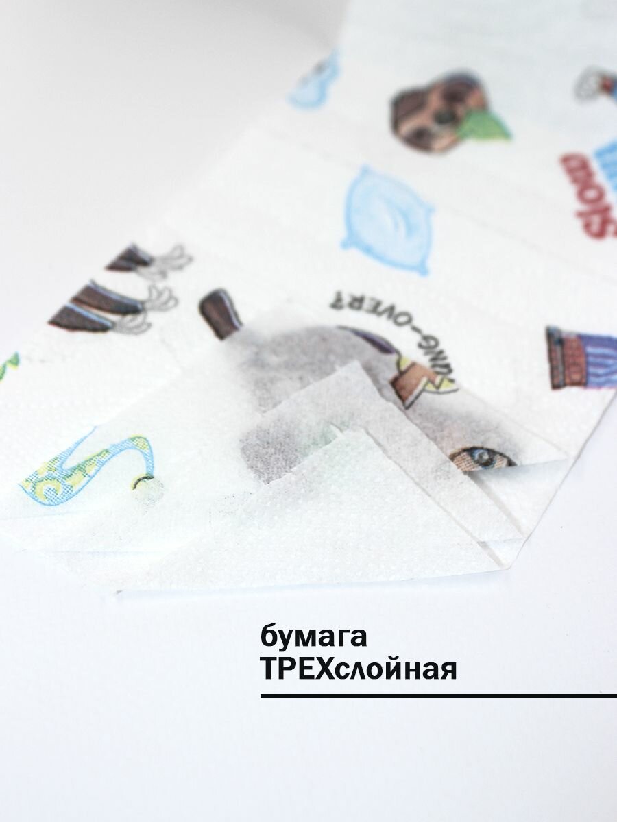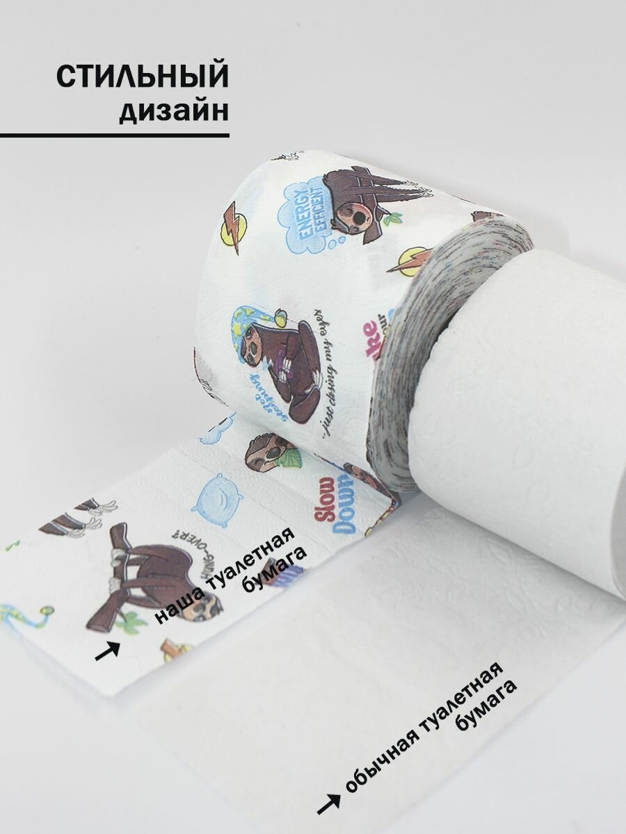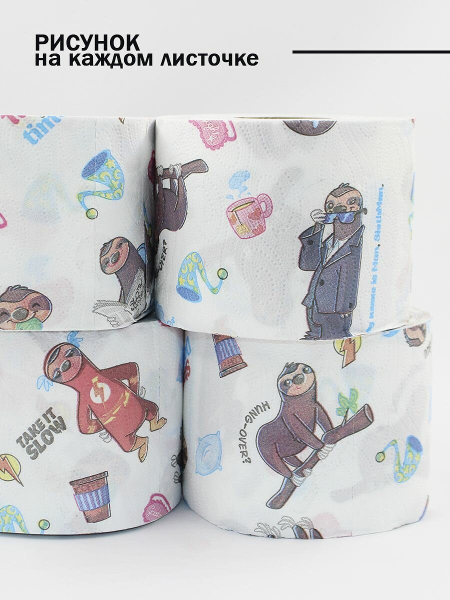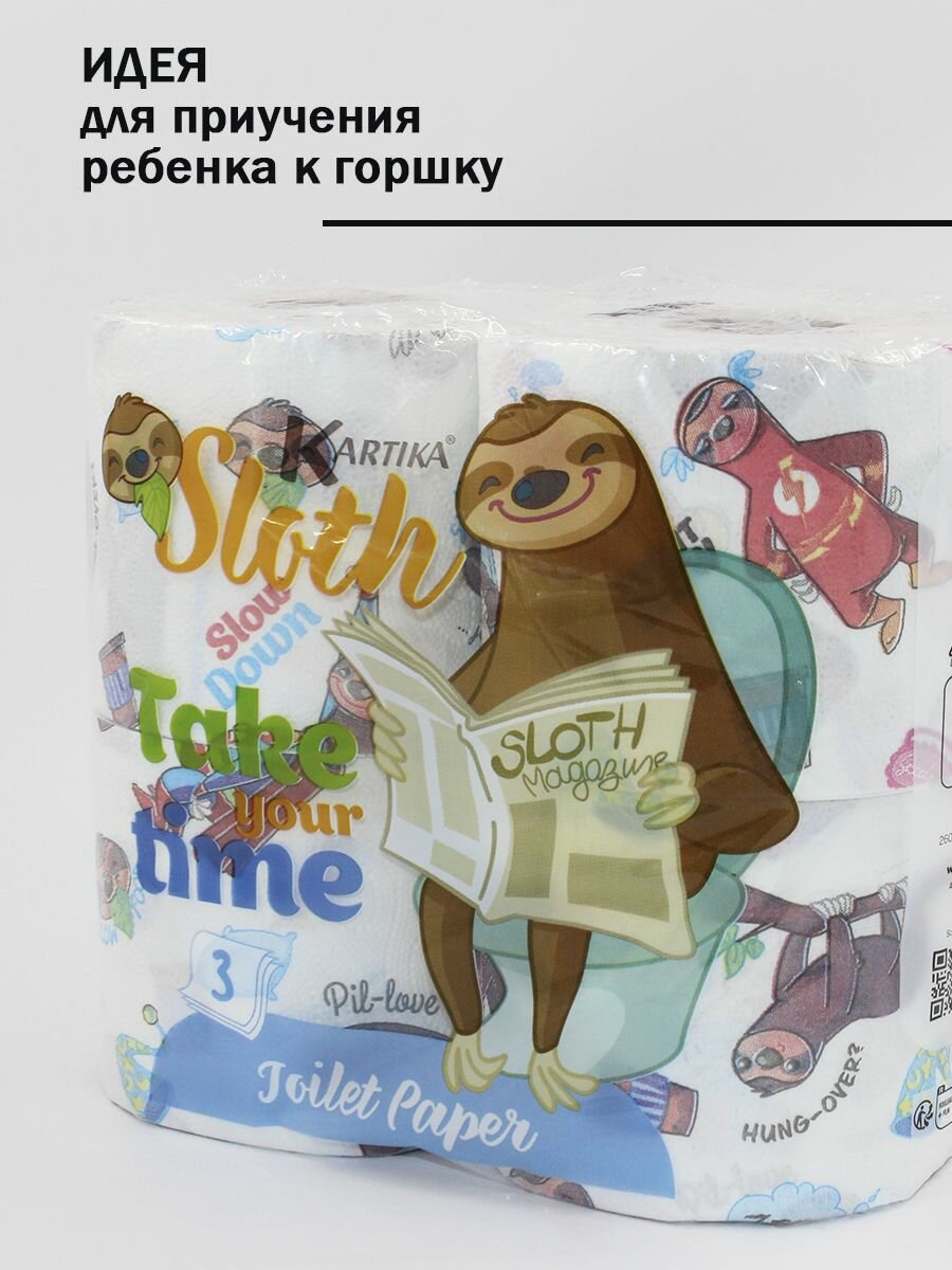 Купить Туалетная бумага с рисунком "Ленивец" 3 слоя, 4 рулона по 200 листов, World Cart