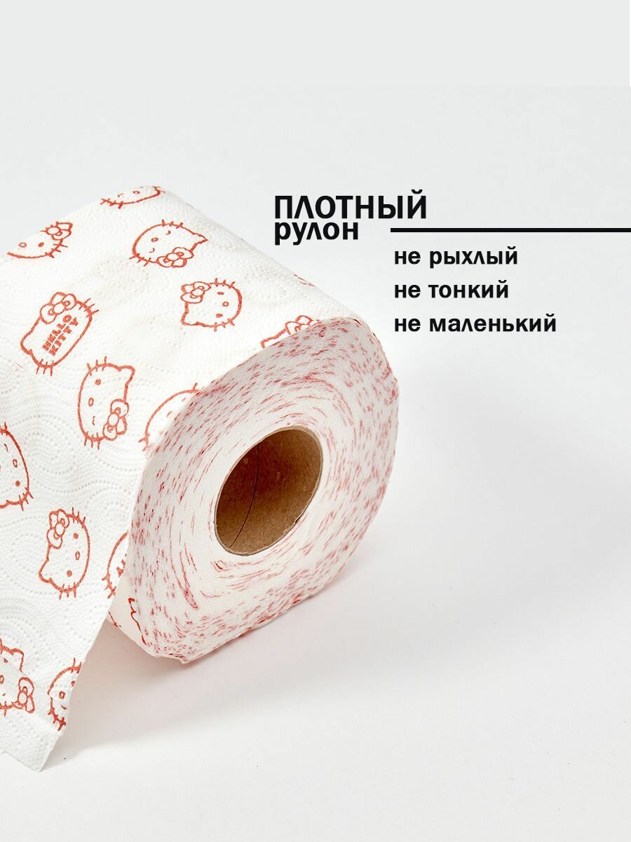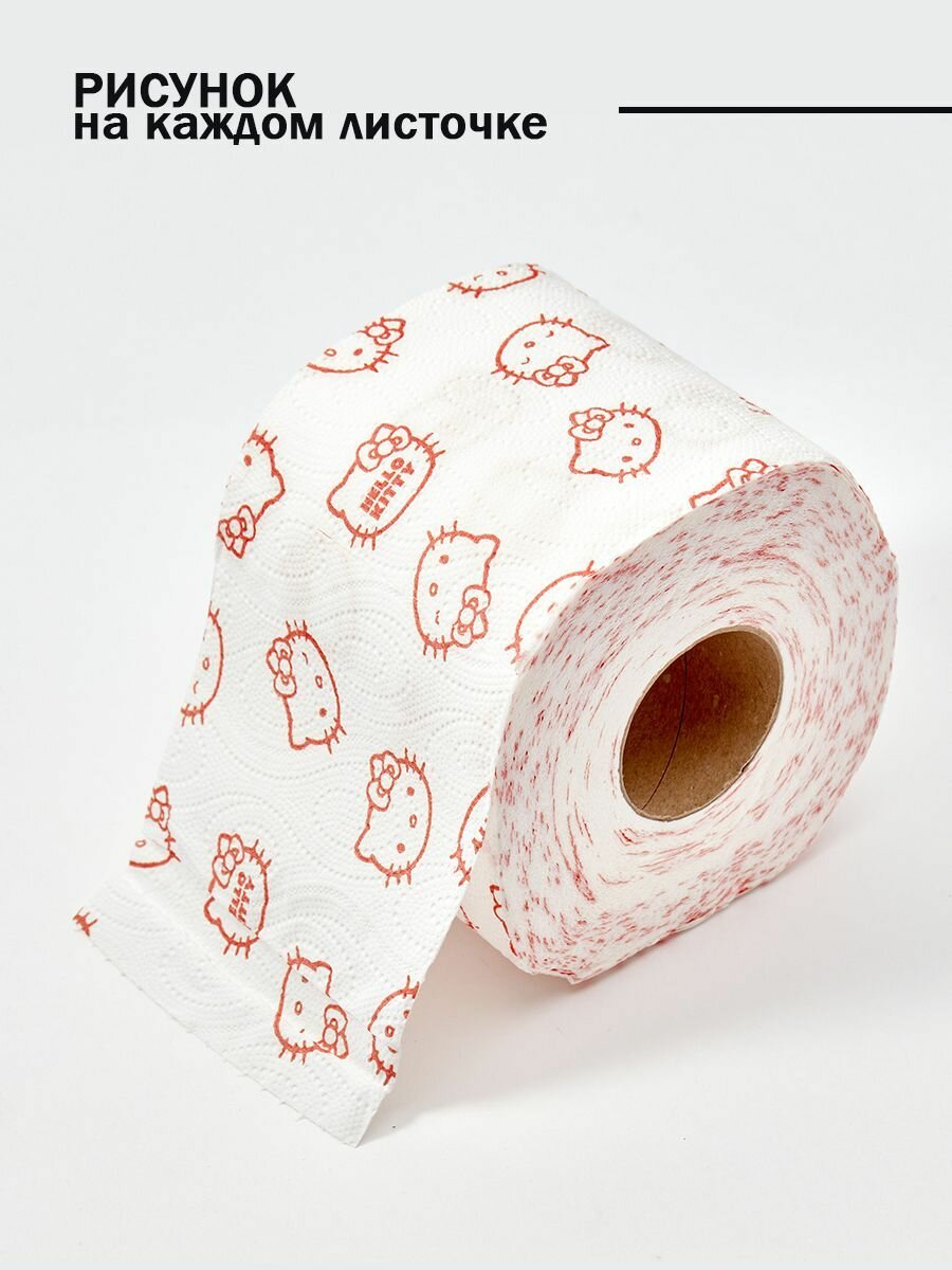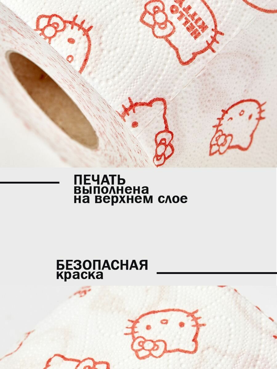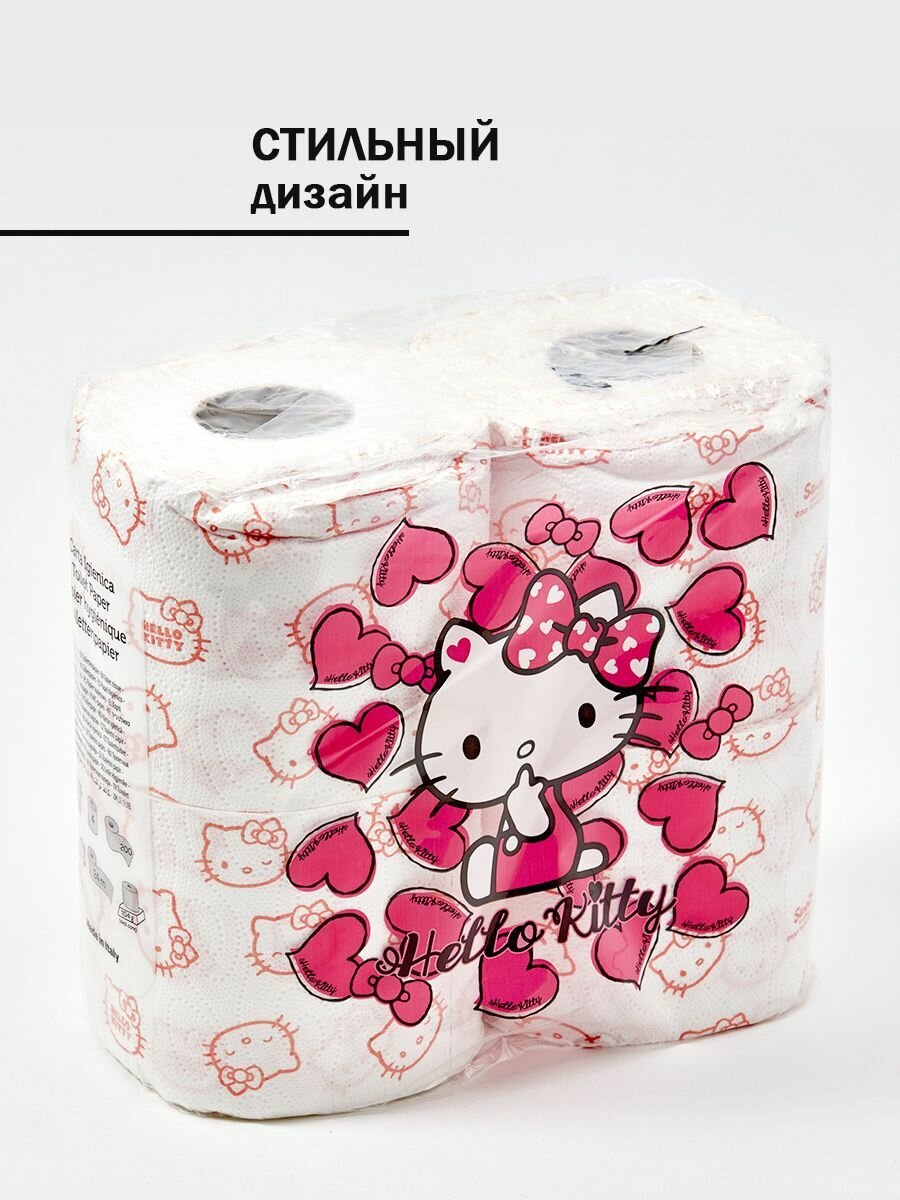 Туалетная бумага "Hello Kitty" с рисунком, 3 слоя, 4 рулона 200 листов 2 упаковки, World Cart