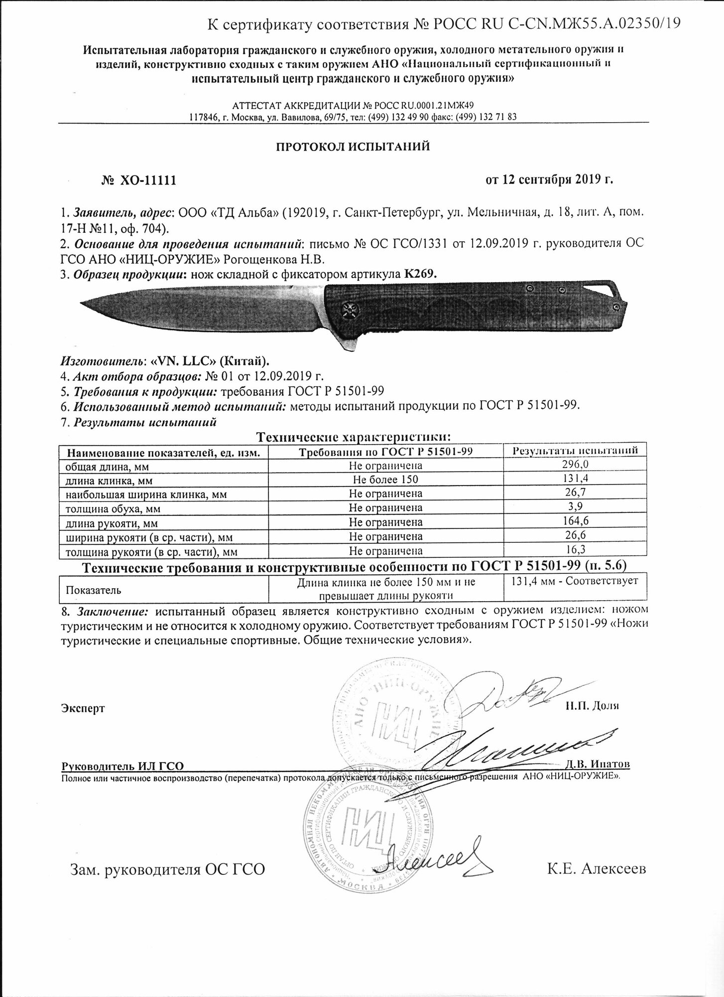 | Длина клинка | 133 мм |
