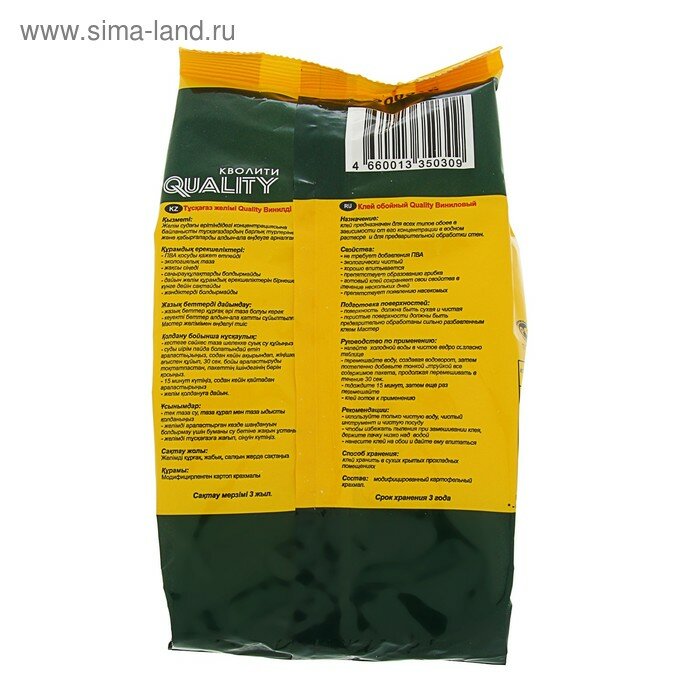Клей обойный Quality, виниловый, мягкая упаковка, 200 г