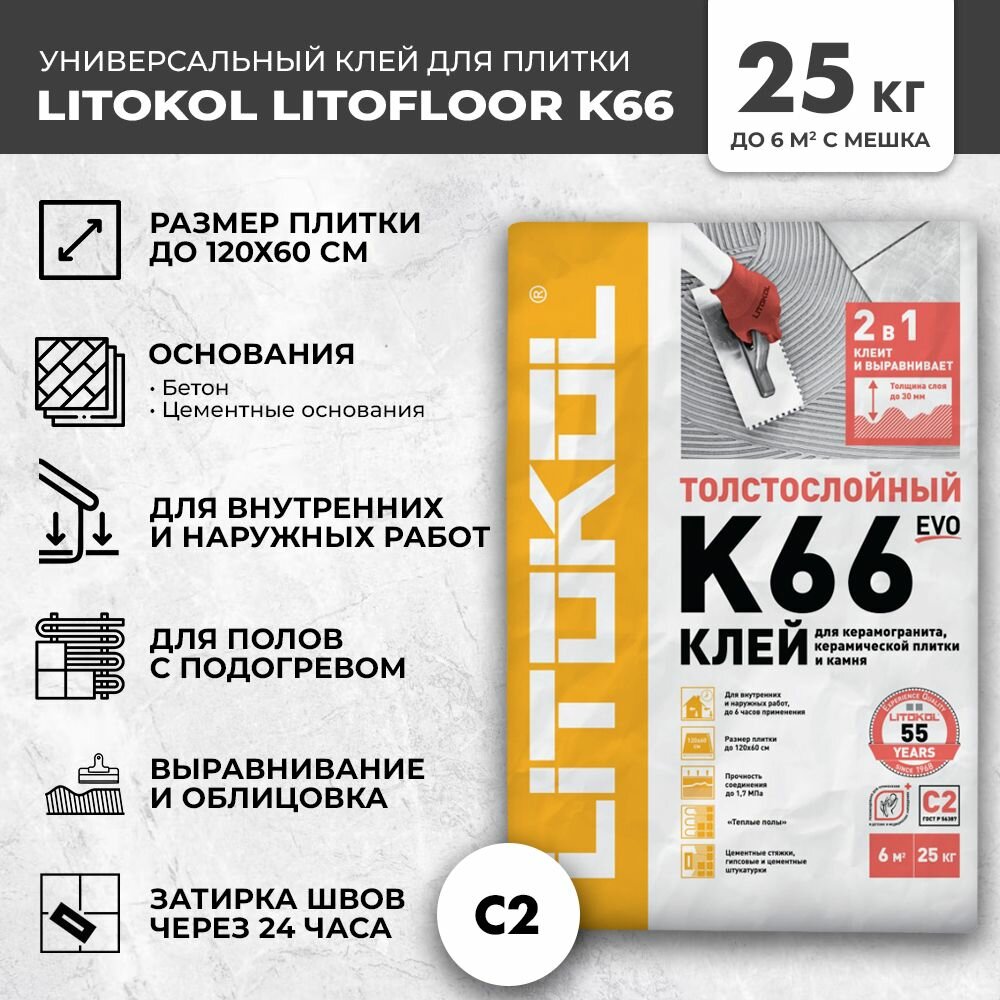 Клей для плитки C2 LITOKOL LITOFLOOR K66 толстослойный 25 кг интересное: