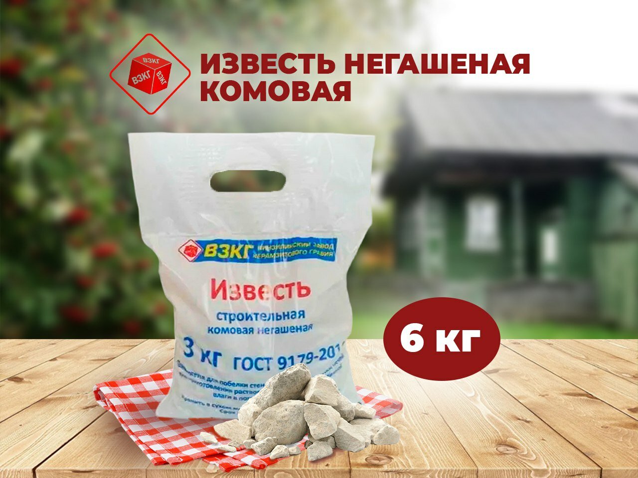 Известь негашеная комовая, фасовка 6 кг, объем 12 литров, бренд ООО взкг интересное: