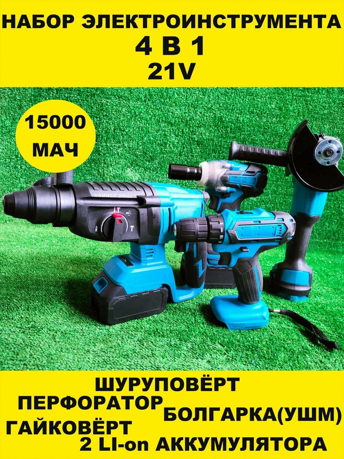 | Инструмент в наборе | гайковерт / перфоратор / угловая шлифмашина / шуруповерт |