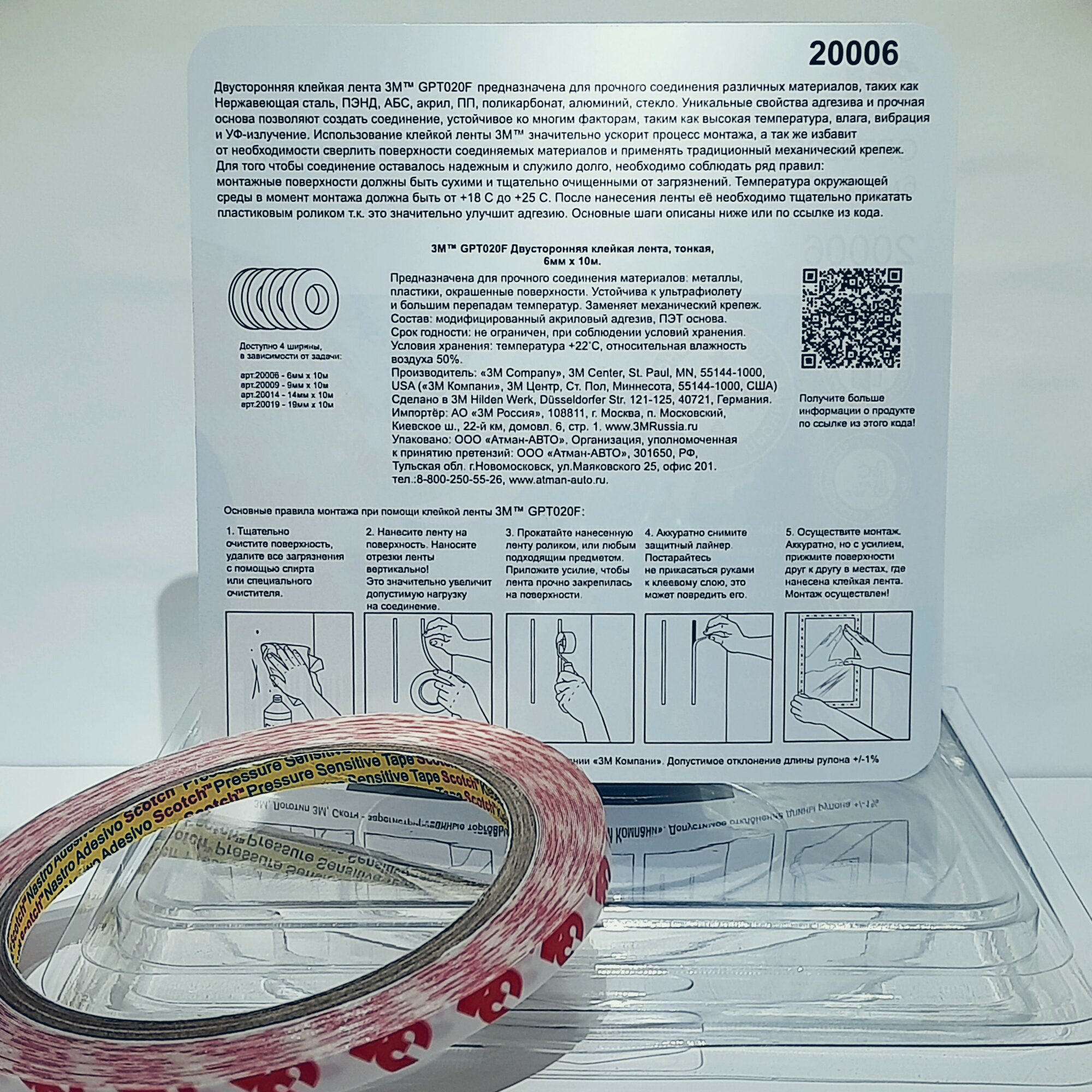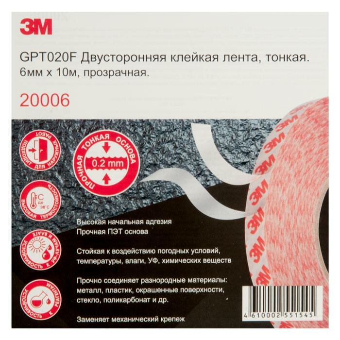 Скотч двухсторонний 3M GPT-020F акриловый прозрачный 6мм x 10м 20006 интересное: