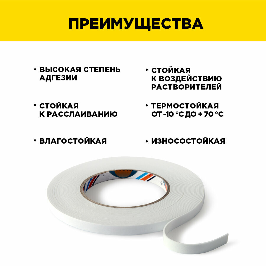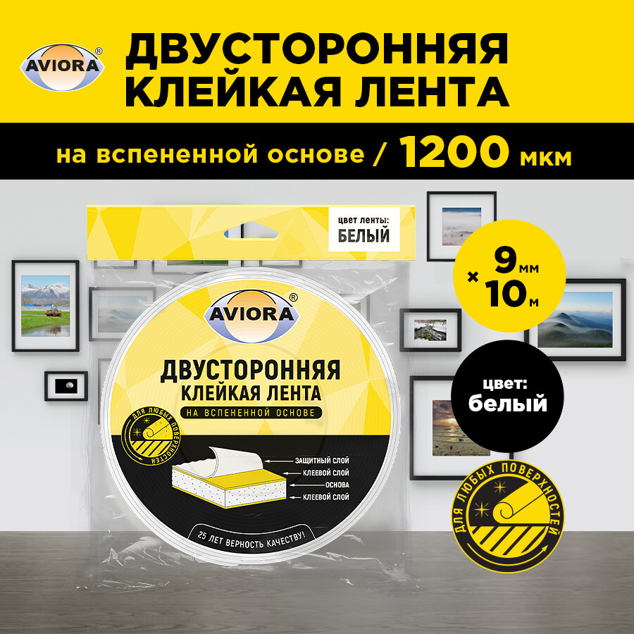 Двусторонняя клейкая лента на вспененной основе 9мм * 10м "AVIORA", белая (302-013) интересное: