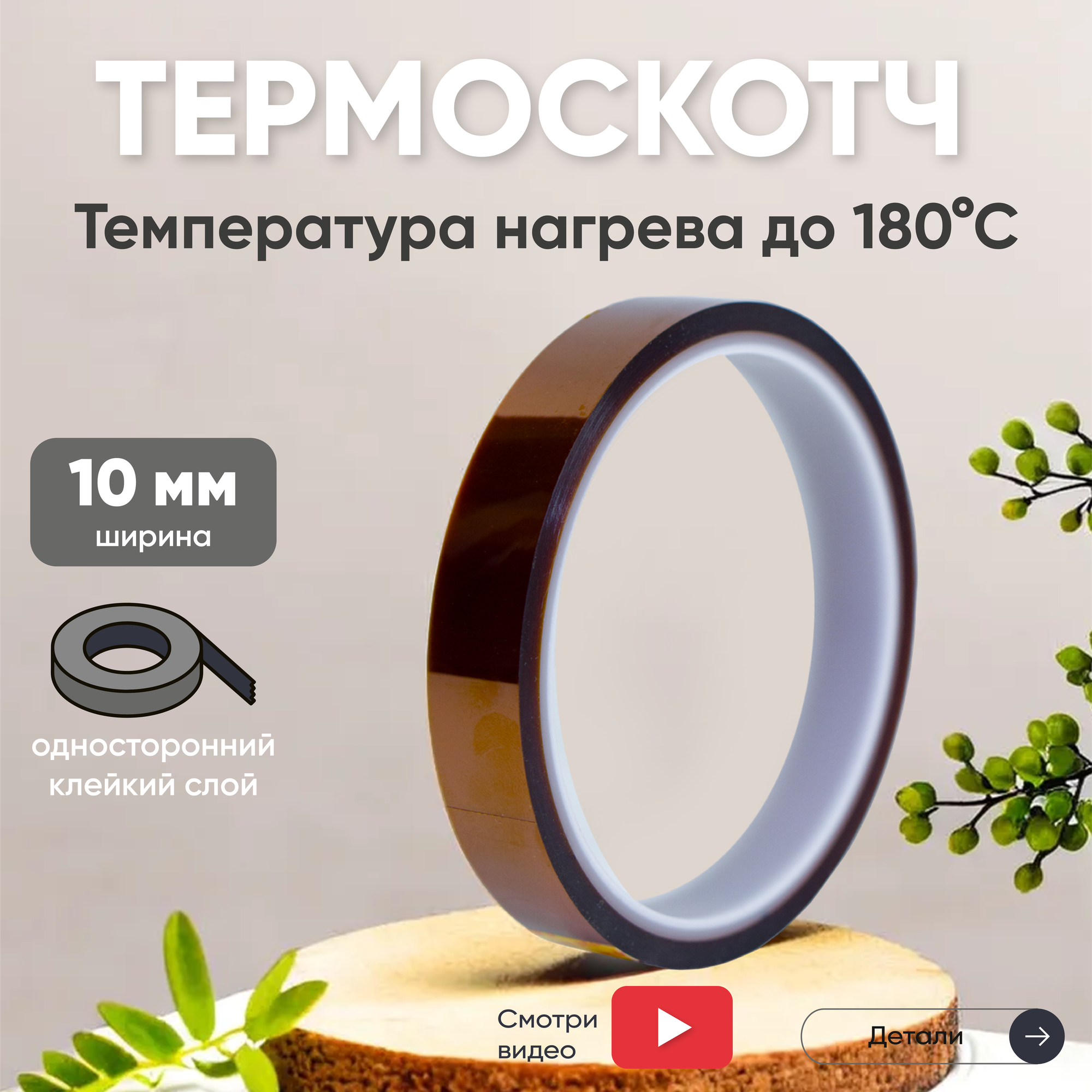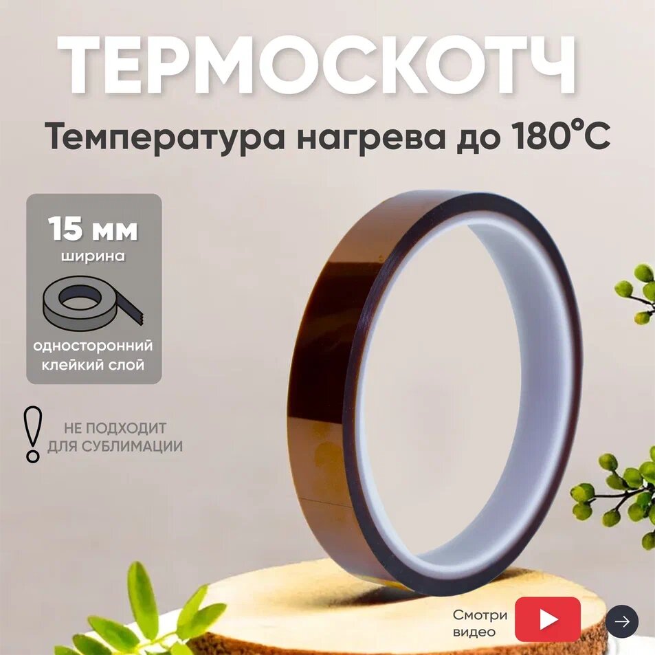 Термостойкая клейкая лента (термоскотч) шириной 15 мм, 33 метра, нагрев до 260 градусов Цельсия интересное: