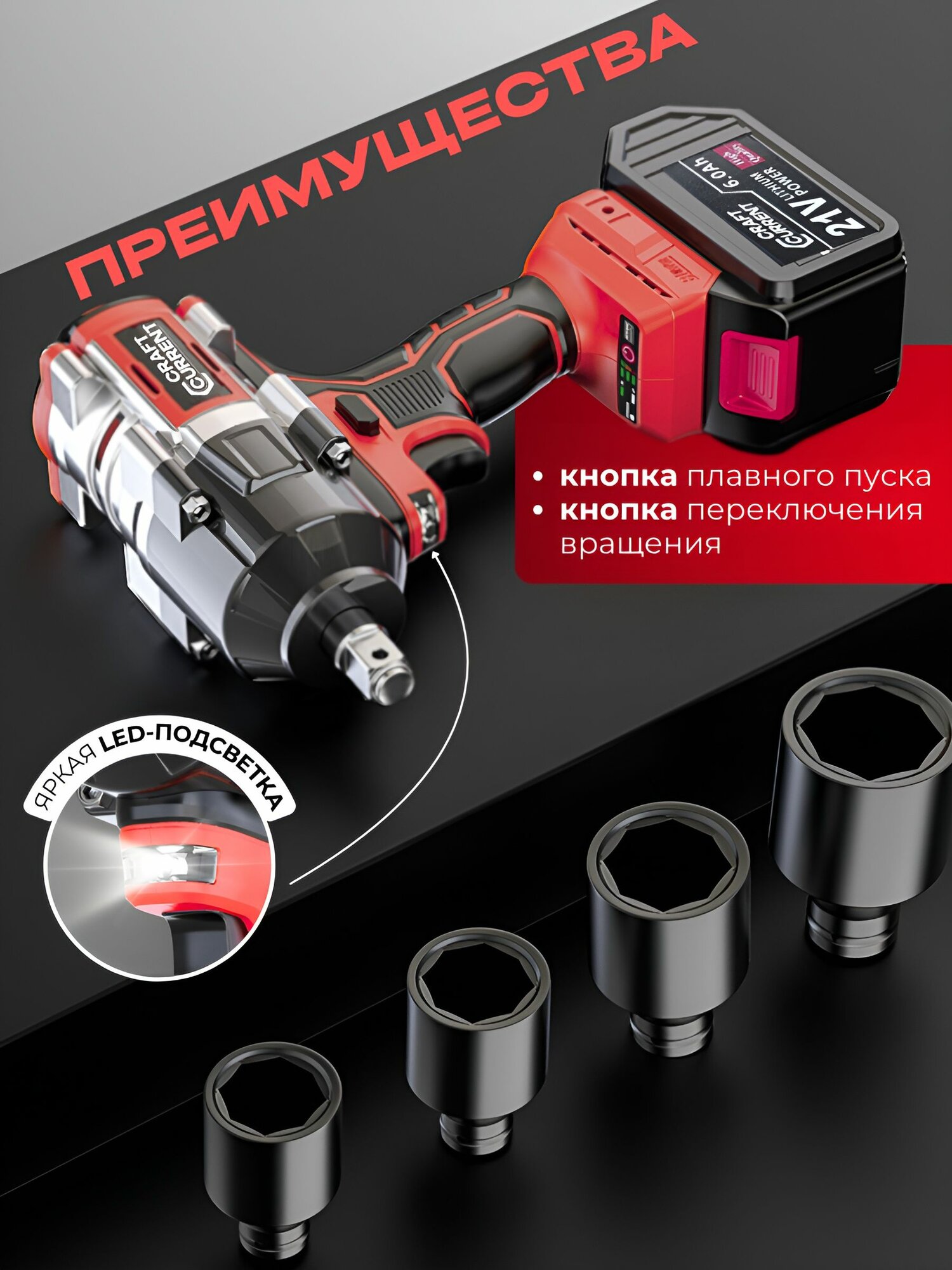 Аккумуляторный ударный гайковерт CraftCurrent СС720, 3800 уд/мин, 2 аккумулятора 21V Li-ion 6.0Ач, 720Нм, З/У, кейс интересное:
