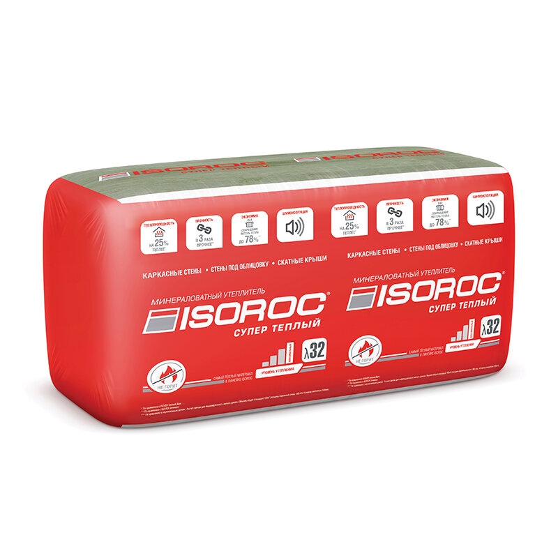 Изорок СуперТеплый утеплитель 1000x610x50мм (10шт=6,1м2=0,305м3) / ISOROC Супер Теплый минеральная вата 1000x610x50мм (уп.10шт.=6,1м2=0,305м3) интересное: