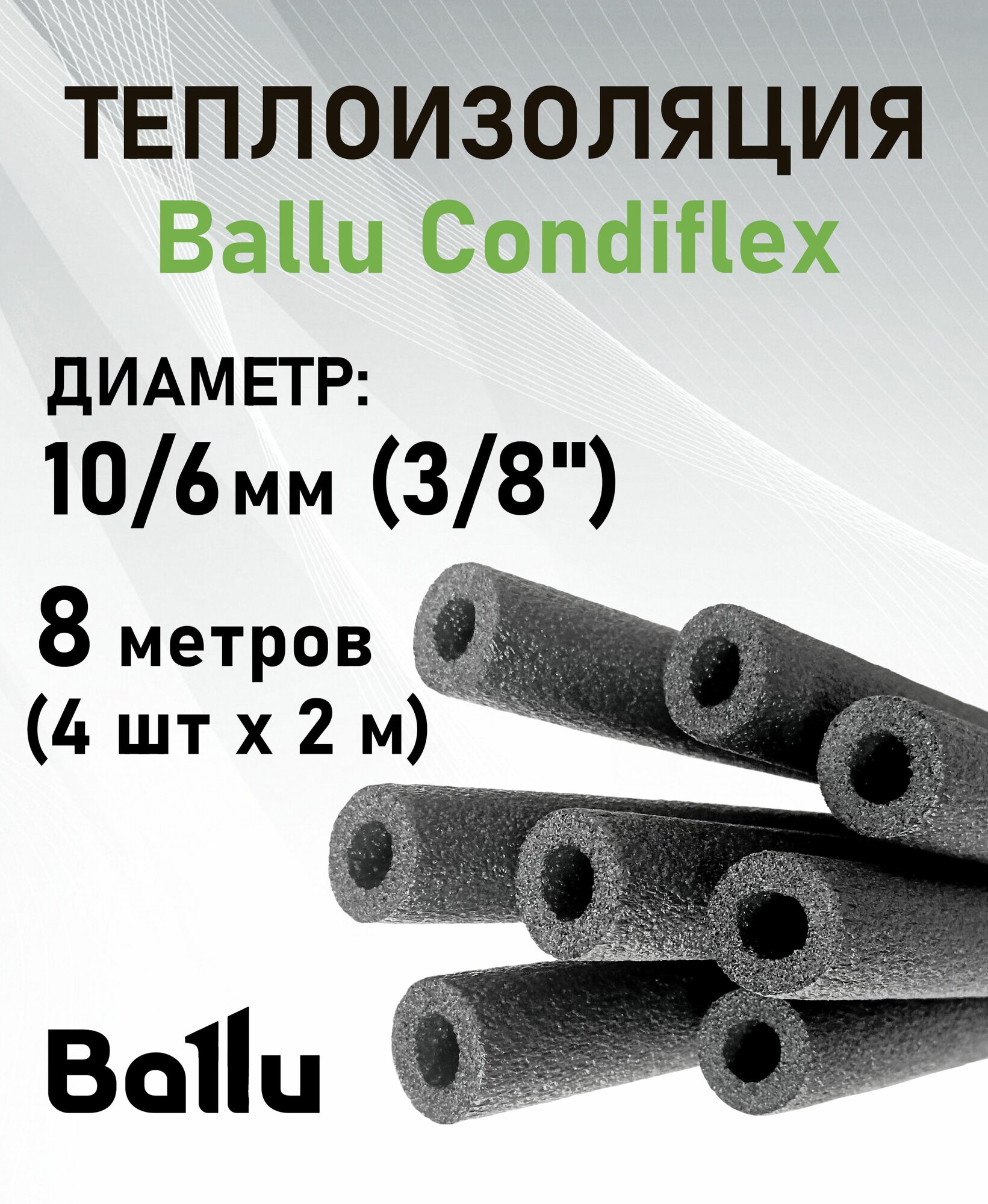 Купить Теплоизоляция 3/8" (10/6 мм) 8 метров (2 м х 4 шт) Ballu Condiflex