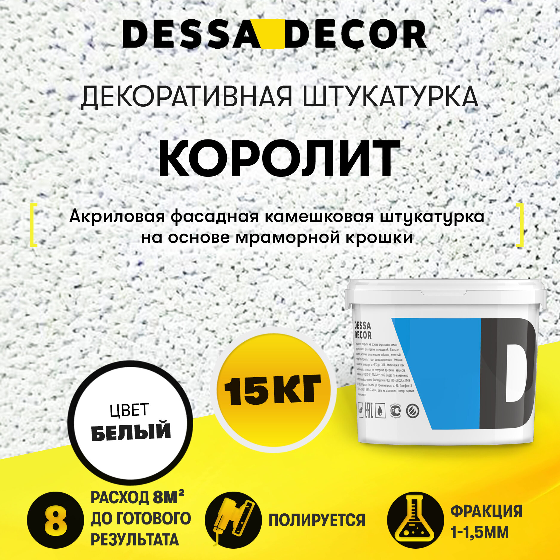 Декоративная штукатурка DESSA DECOR Королит 15 кг, акриловая фасадная и интерьерная камешковая штукатурка, фракция 1-1,5 мм интересное:
