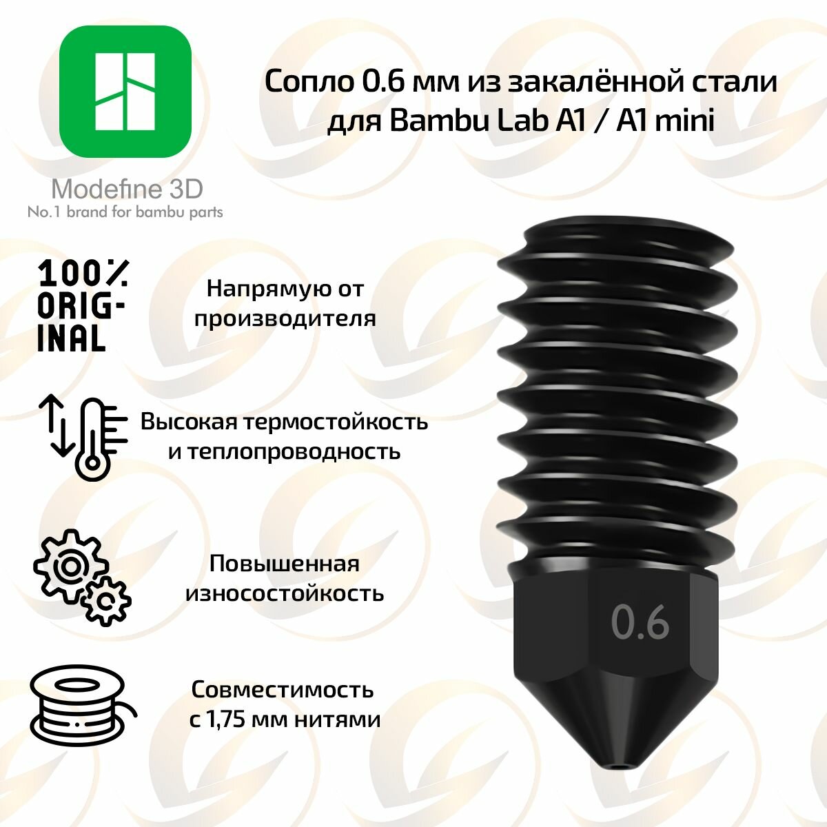Купить Оригинальное сопло Modefine3D 0.6 мм для 3D-принтера Bambu Lab A1 и A1 mini