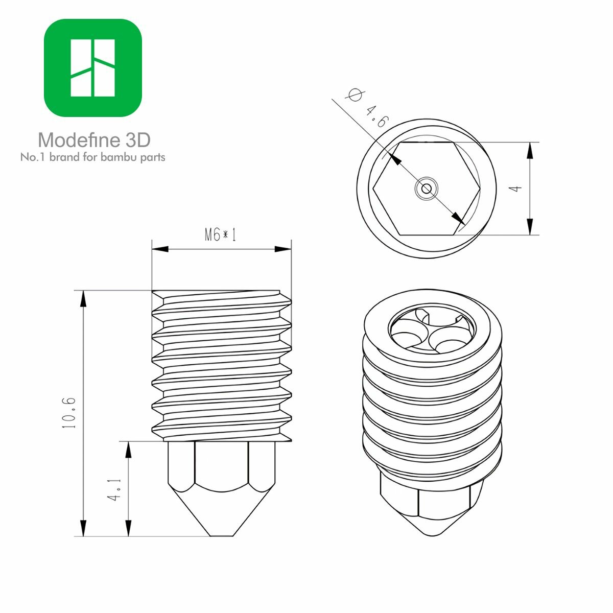 Оригинальное сопло Modefine3D 0.4 мм для 3D-принтера Bambu Lab A1 и A1 mini