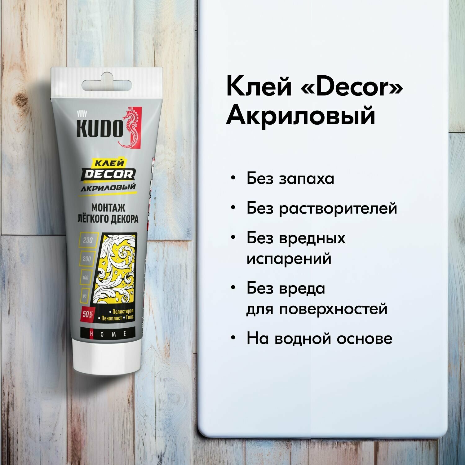 Клей "жидкие гвозди" KUDO DECOR для монтажа лёгкого декора на акриловой основе, белый, 200 мл, KBT-311 интересное: