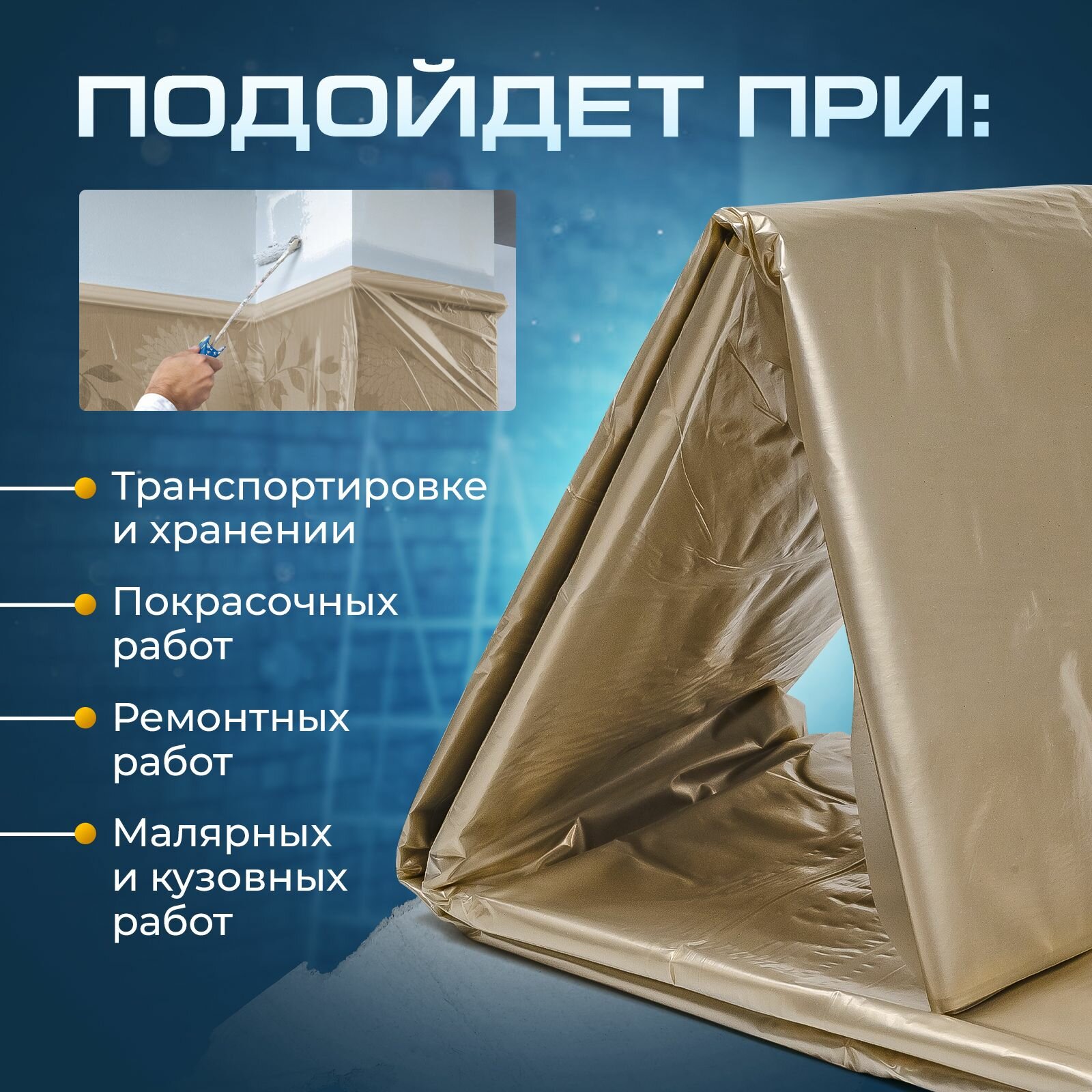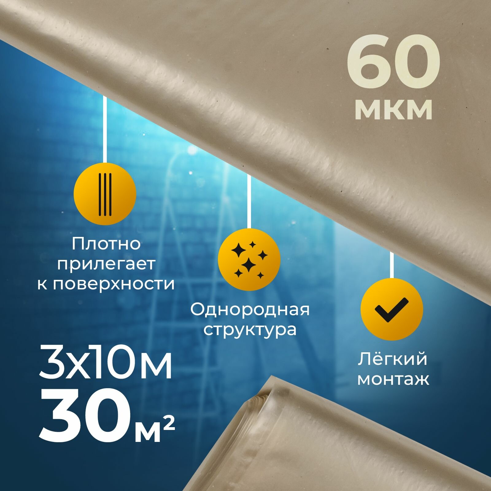 Пленка укрывная строительная 60 мкм 3,2 х 10 метров для ремонта прочная 1 сорт Парников