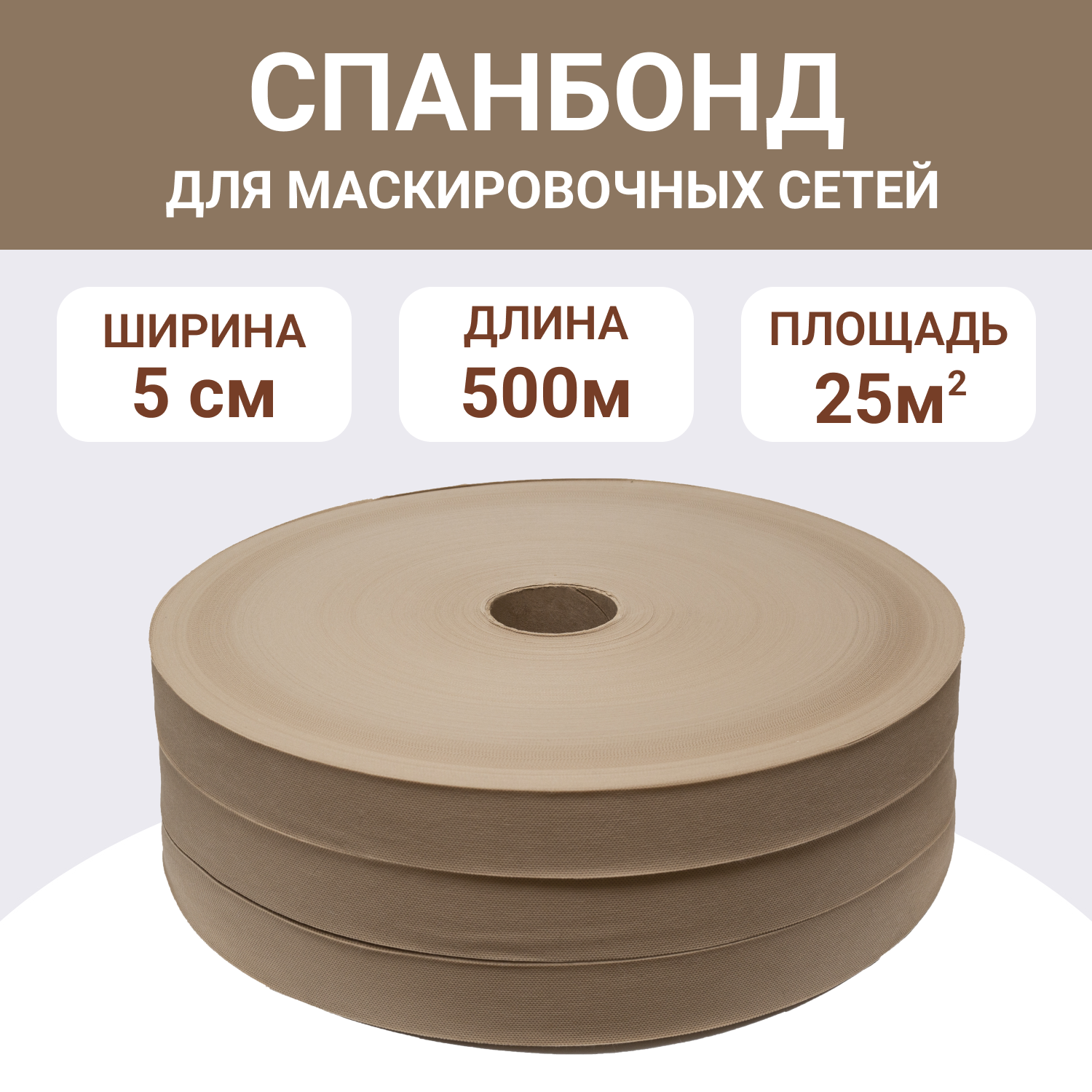 Спанбонд "Койот", ширина 5см, ткань для маскировочных сетей
