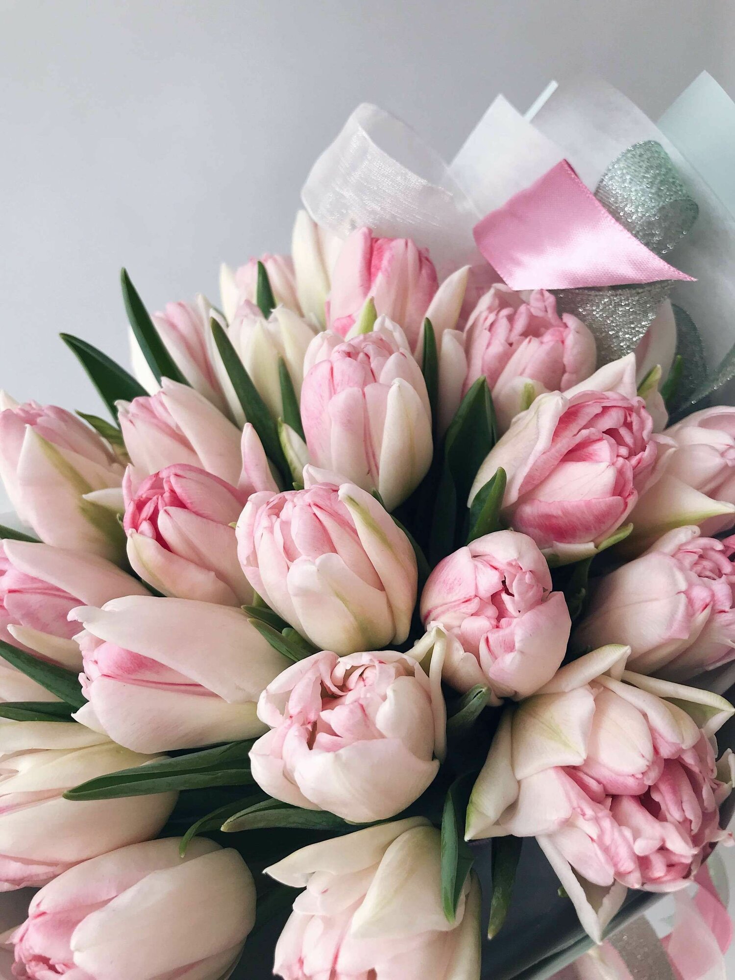 Купить Тюльпаны пионовидные ,луковицы сорт FOXTROT бело-розовые (4 шт)