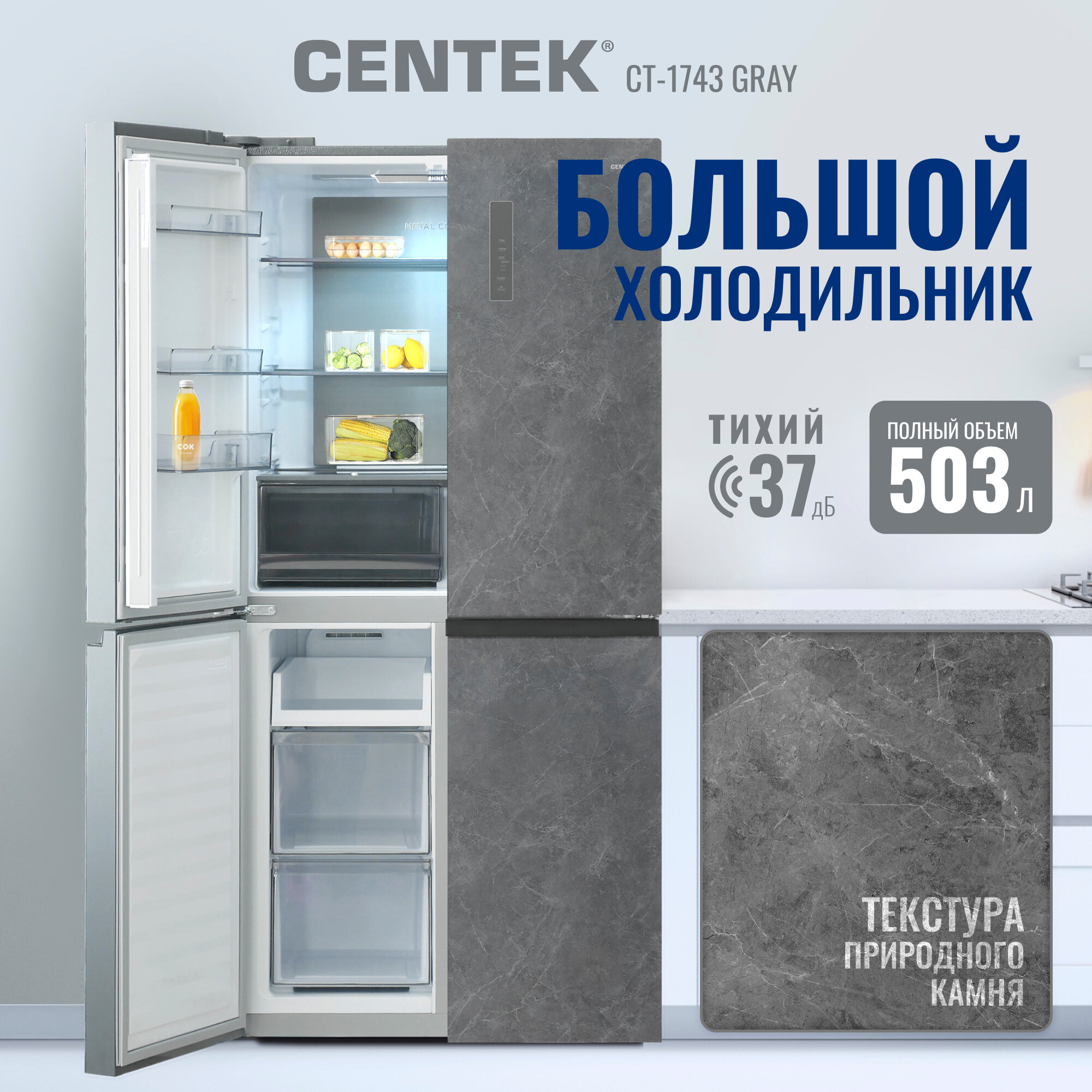 Большой четырехдверный холодильник No-Frost CENTEK CT-1743 Gray Stone: серый графит, 503л (317л/186л), текстура камень, инверторный, двухкамерный, А++