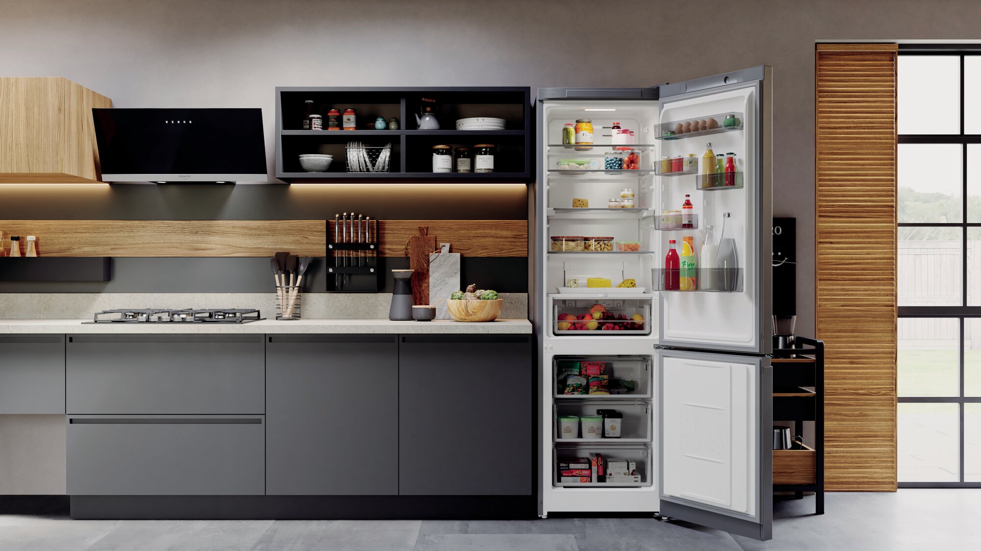 Купить Двухкамерный холодильник Hotpoint HT 7201I DX O3, No Frost, темно-серый