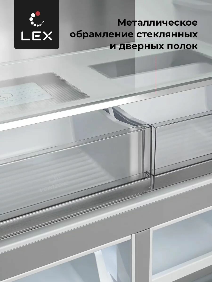 Холодильник отдельностоящий трехкамерный LEX LCD505GLGID, Электронное управление, Режим Отпуск, Суперзаморозка, Суперохлаждение . LED освещение морозильной камеры.