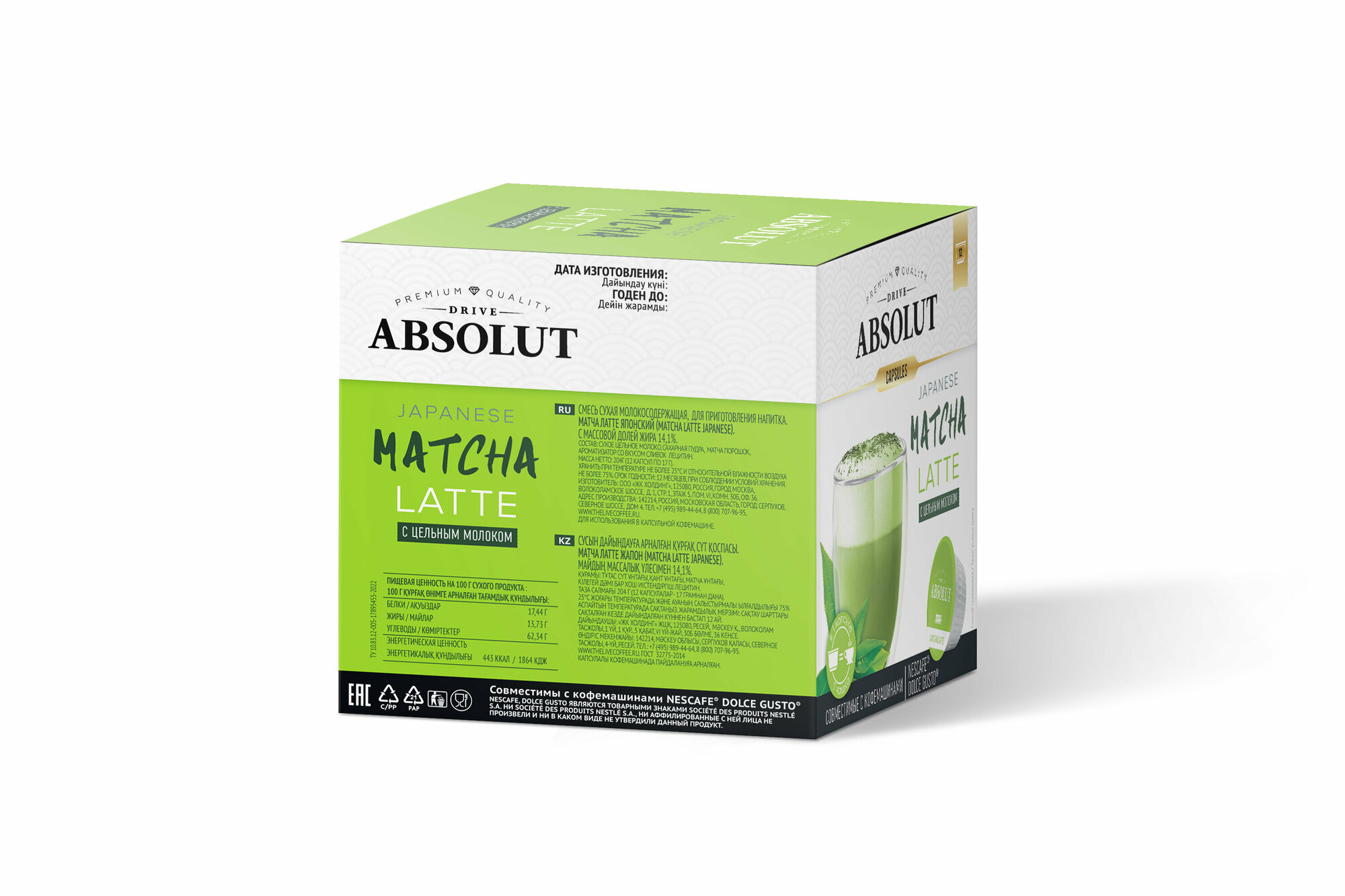 Напиток в капсулах Absolut Drive "матча латте" 12 капсул (для кофемашин Dolce Gusto)