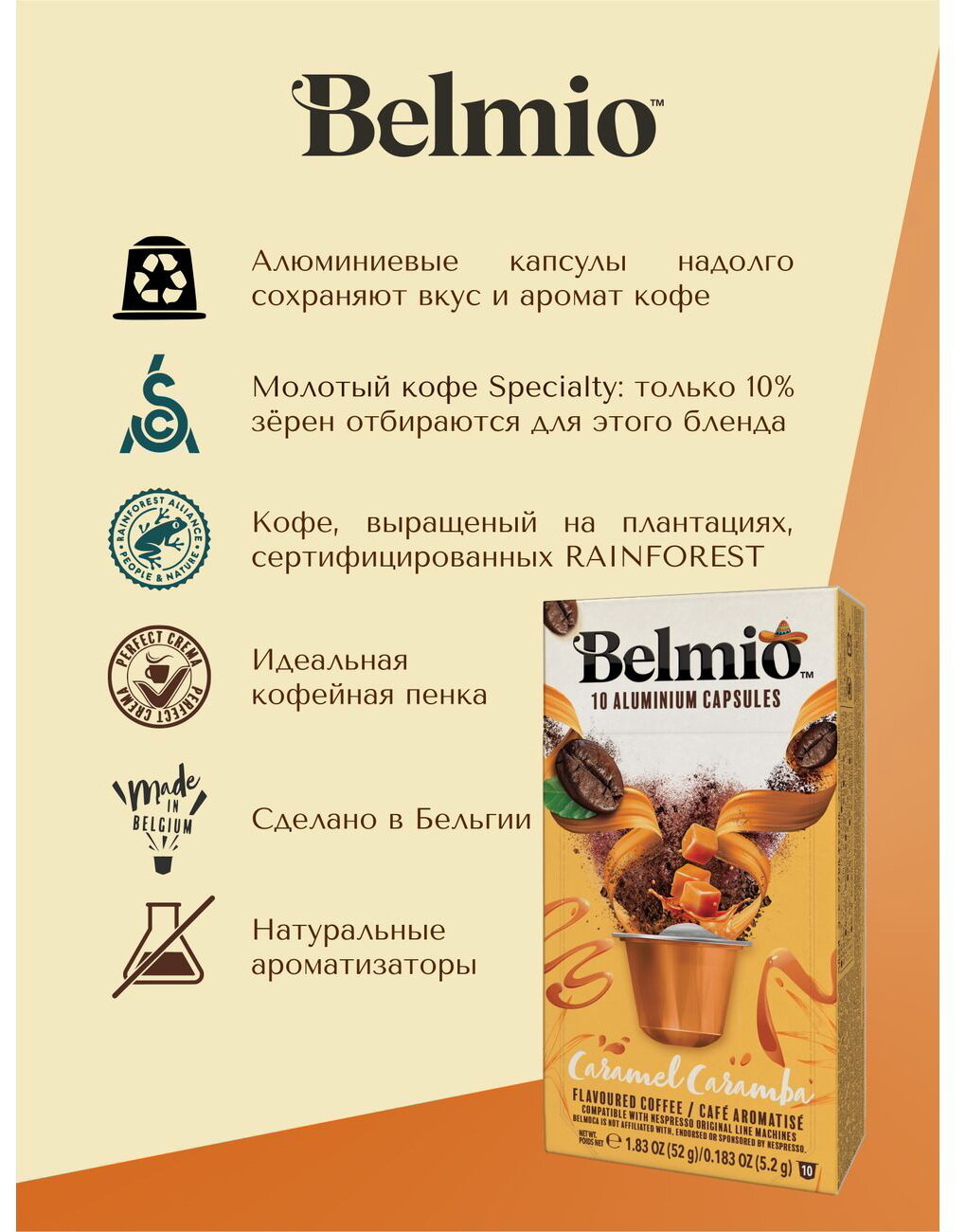 Кофе молотый Belmio в алюминиевых капсулах Caramel Caramba, для системы Nespresso (Неспрессо), 10 капсул