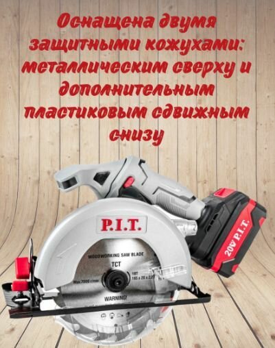 Пила циркулярная аккумуляторная P.I.T. PKS20H-165A0 SOLO 20В без АКБ и З/У интересное: