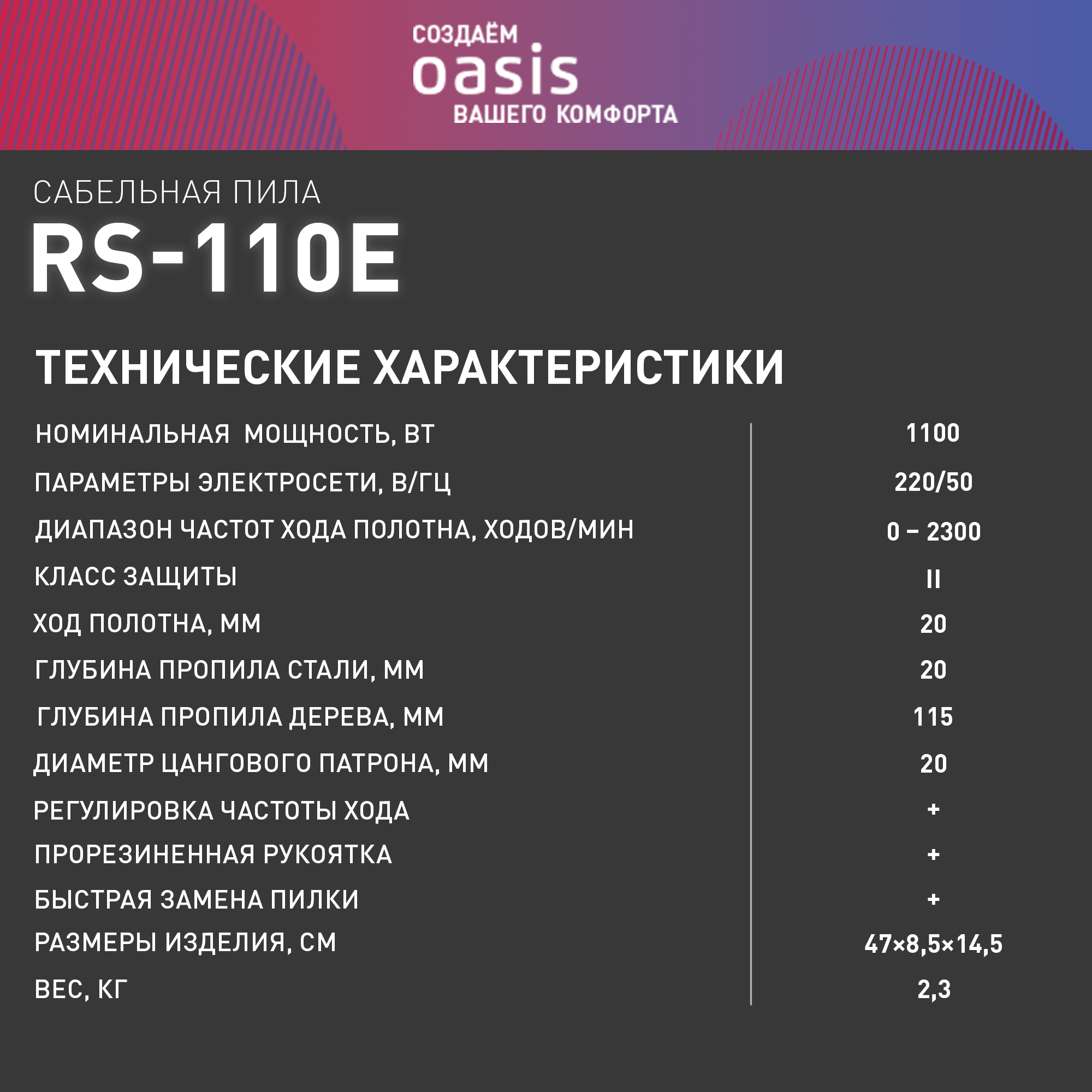 Купить Пила сабельная электрическая сетевая Oasis RS-110E, 1100 Вт