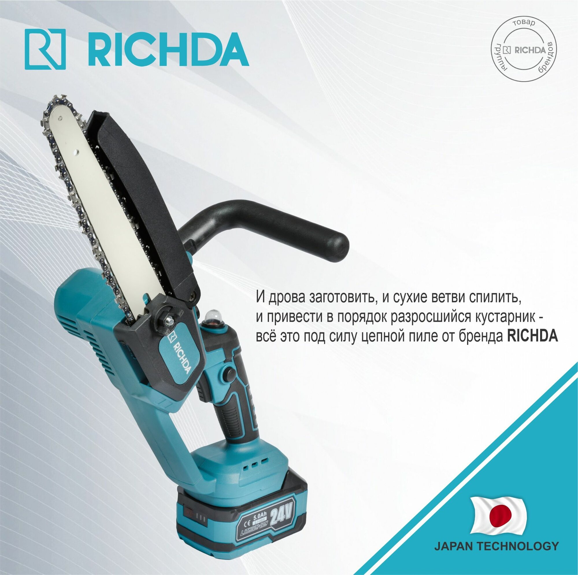 Аккумуляторная цепная пила сучкорез RICHDA RHDA008 8'' 24V 5Ah интересное: