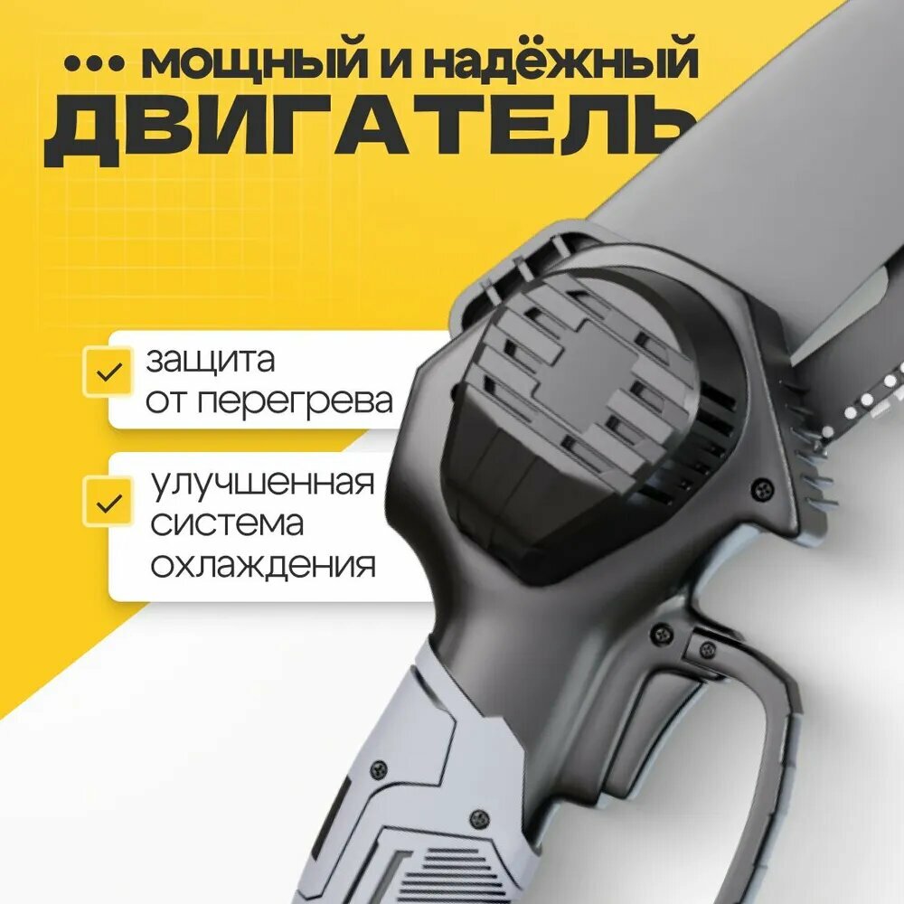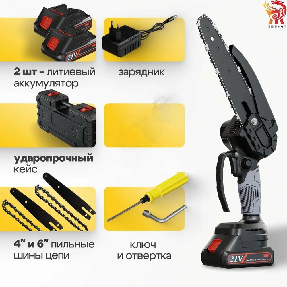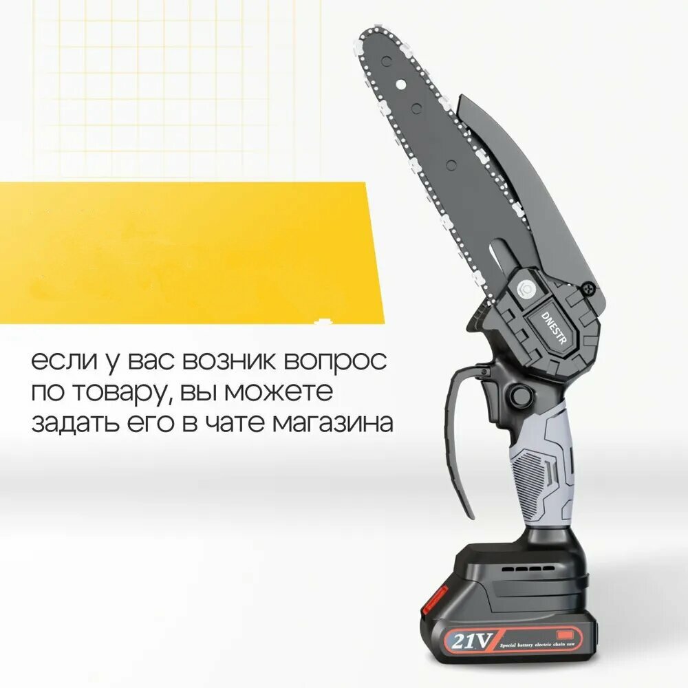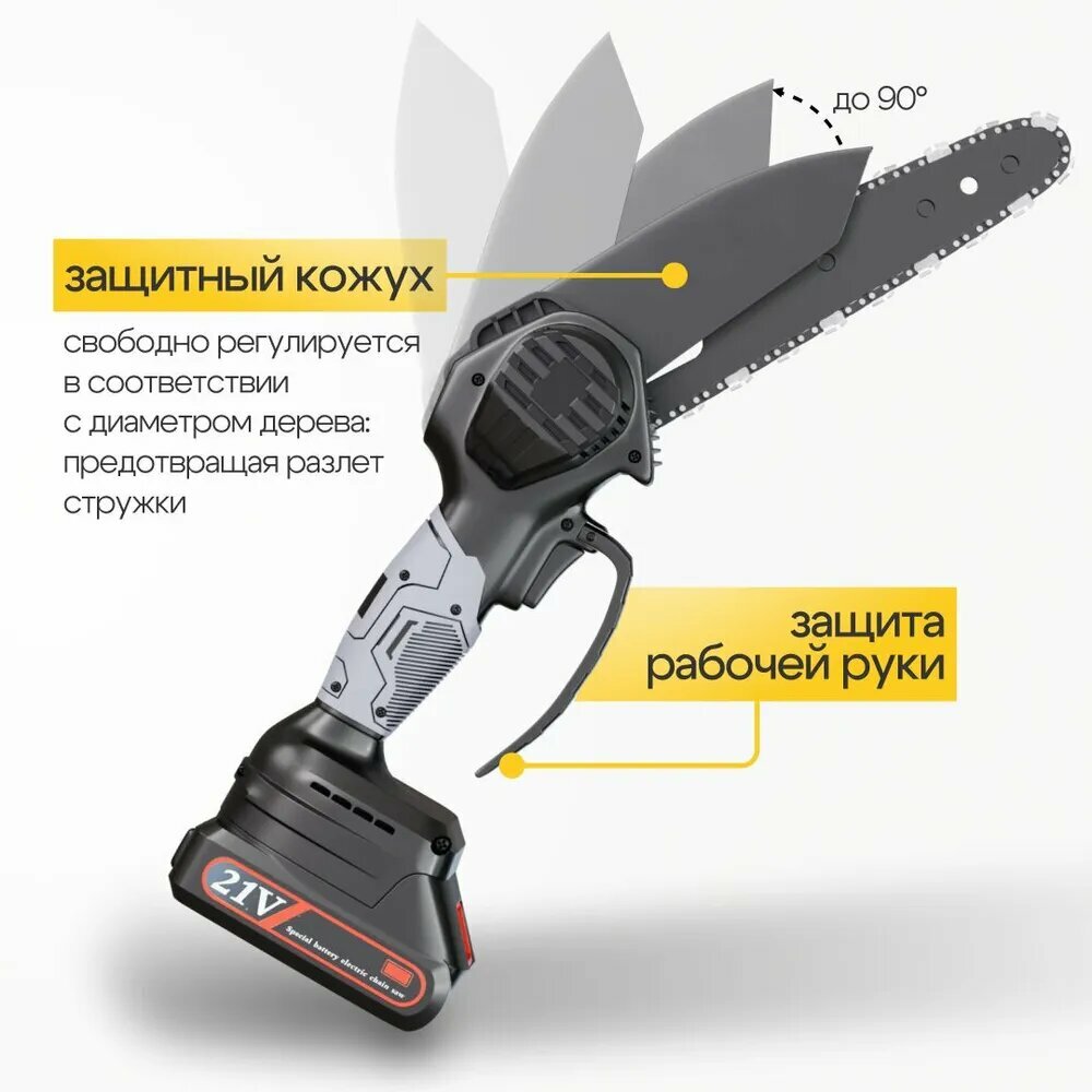 Садовая аккумуляторная цепная мини пила с масляным насосом (сучкорез) 6 и 4 дюйма / Также 2 шины, 2 цепи, 2 аккумулятора интересное: