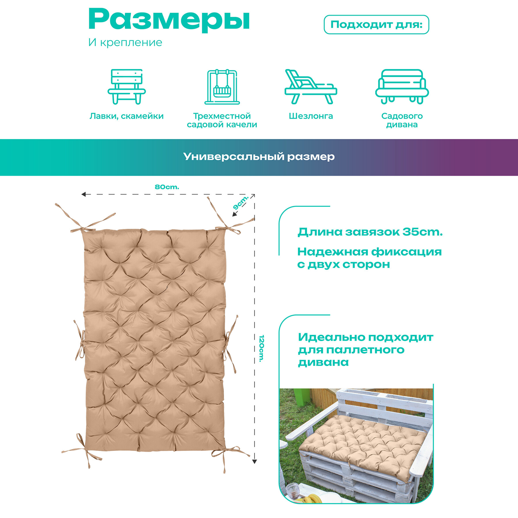 СохранитьПодушка матрас для мебели и паллет, матрас на подоконник Bio-Line 80х120 см с завязками для дома и дачи с водоотталкивающей пропиткой, бежевый интересное:
