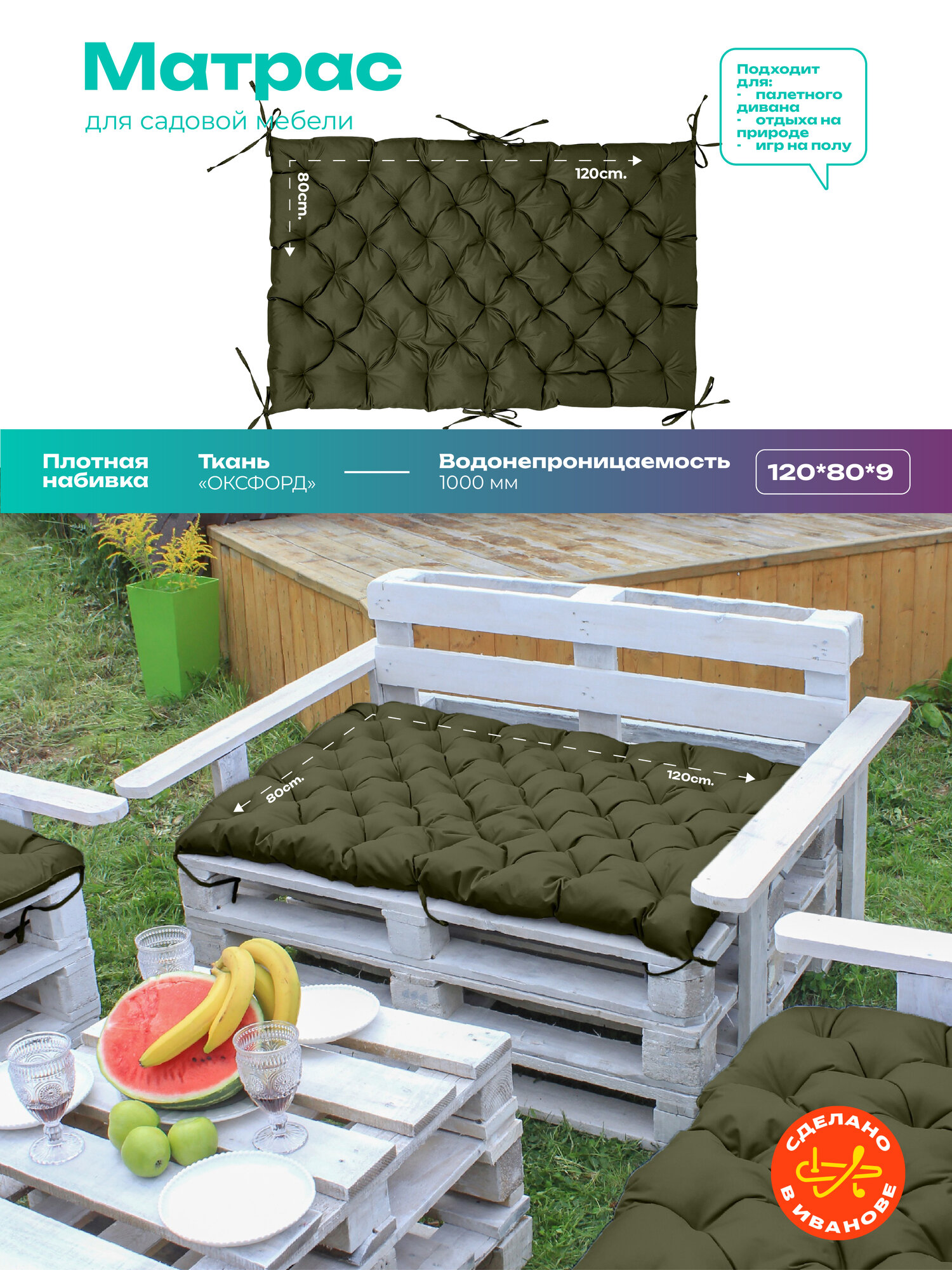 Купить Подушка матрас для мебели и паллет, матрас на подоконник Bio-Line 80х120 см с завязками для дома и дачи с водоотталкивающей пропиткой, хаки